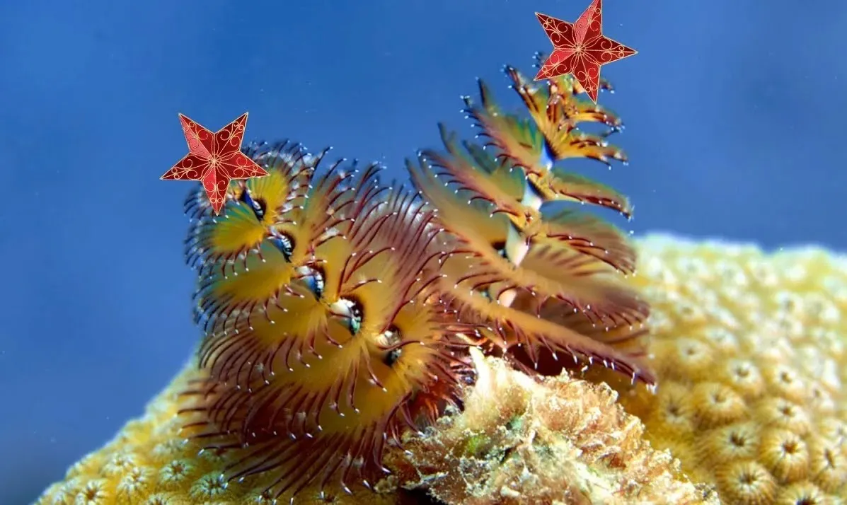 Так кто же наш новогодний гость? Spirobranchus giganteus - трубчатый многощетинковый морской червь, известный как червь «новогодняя ёлочка» или рождественский елочный червь (видите, я даже ничего не выдумал, его так еще до меня назвали). Название, кстати, связано с двумя спиралевидными структурами (коронами), которые внешне похожи на новогоднюю ёлку. Согласитесь, что выглядит наш герой - просто роскошно, ну как для червя, то уж точно.