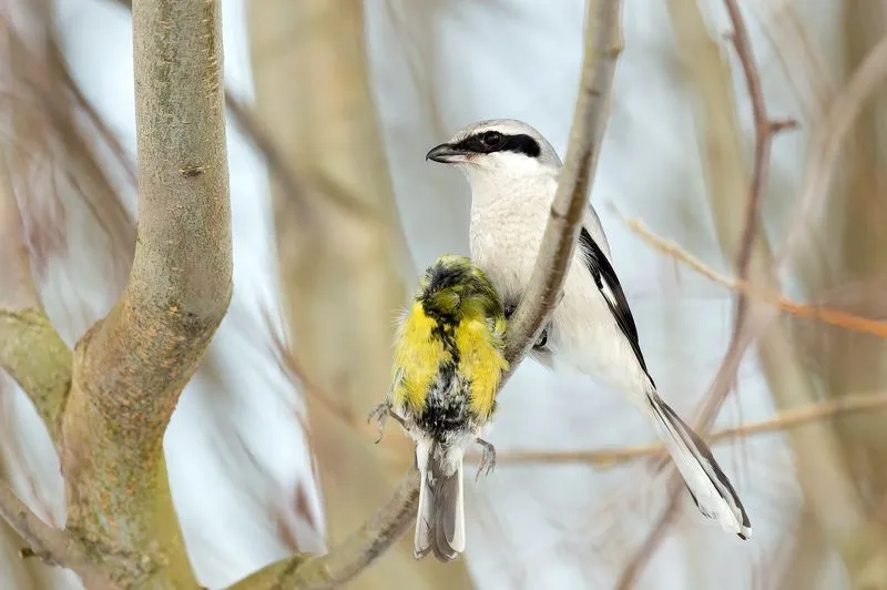 А еще сорокопуты не терпят конкуренции на своей территории, поэтому они выгоняют с нее всех хищников крупнее себя (мелкие рассматриваются как корм: их надо беречь). Как? Они знатные тролли птичьего мира. Часть слова «сорокопут» происходит о славянского «пудити» - «гнать», а латинское видовое имя сорокопута excubitor означает «страж», «часовой» (и птичка оправдывает их все сполна). Например, сорокопут может по приколу согнать с ветки спящую днем сову, или начать кричать с ветки, когда видит крадущегося хищника, тем самым спугивая его добычу. Сорокопуты даже осмеливаются дразнить ястребов и соколов (ребята ходят по краю, но цель оправдывает средства). Так или иначе, сорокопуты выпроваживают со своей земли всех, кто представляет им конкуренцию, и другие хищники уходят туда, где им никто не мешает.