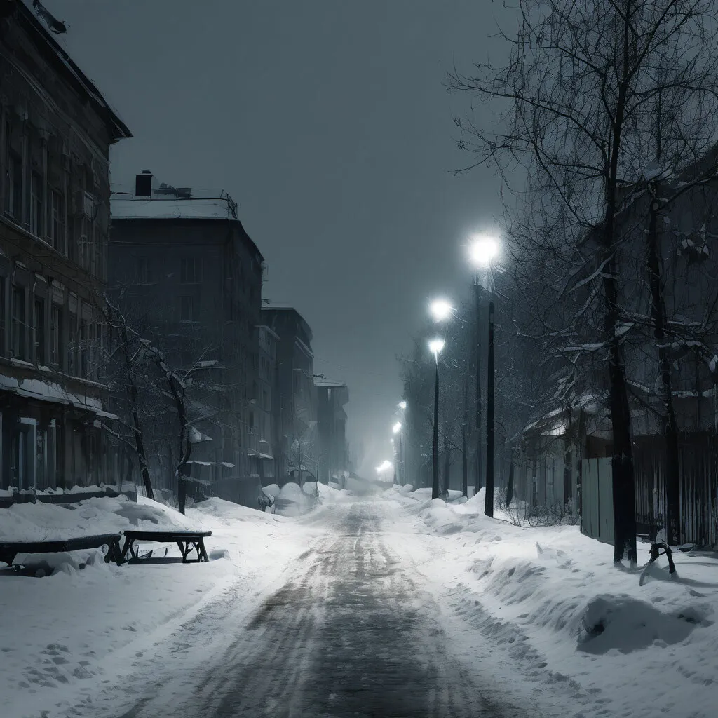 Артём шел следом за ним, постепенно сокращая дистанцию. "И куда тебя, дед, понесло в такую погоду?" - пробормотал Артём шёпотом, удивившись внезапному прохожему. Вдруг, старик остановился под тусклым фонарем, как вкопанный и медленно повернулся в сторону Артёма, будто услышал его слова сквозь завывания снежного ветра.