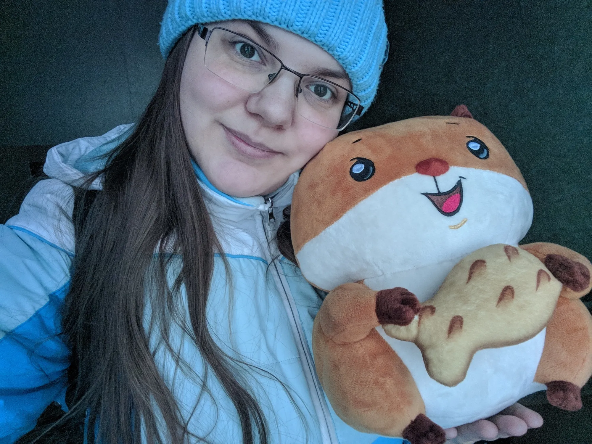 Был вытащен Марсиком а-ка @GGtsune из автомата с клешнёй на нашей декабрьской сходке. Спал со мной, пока я была там)