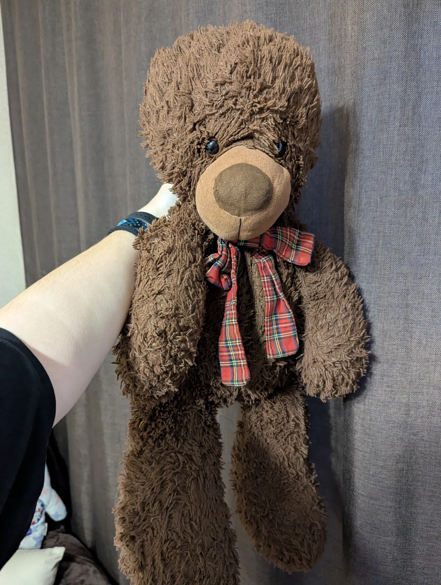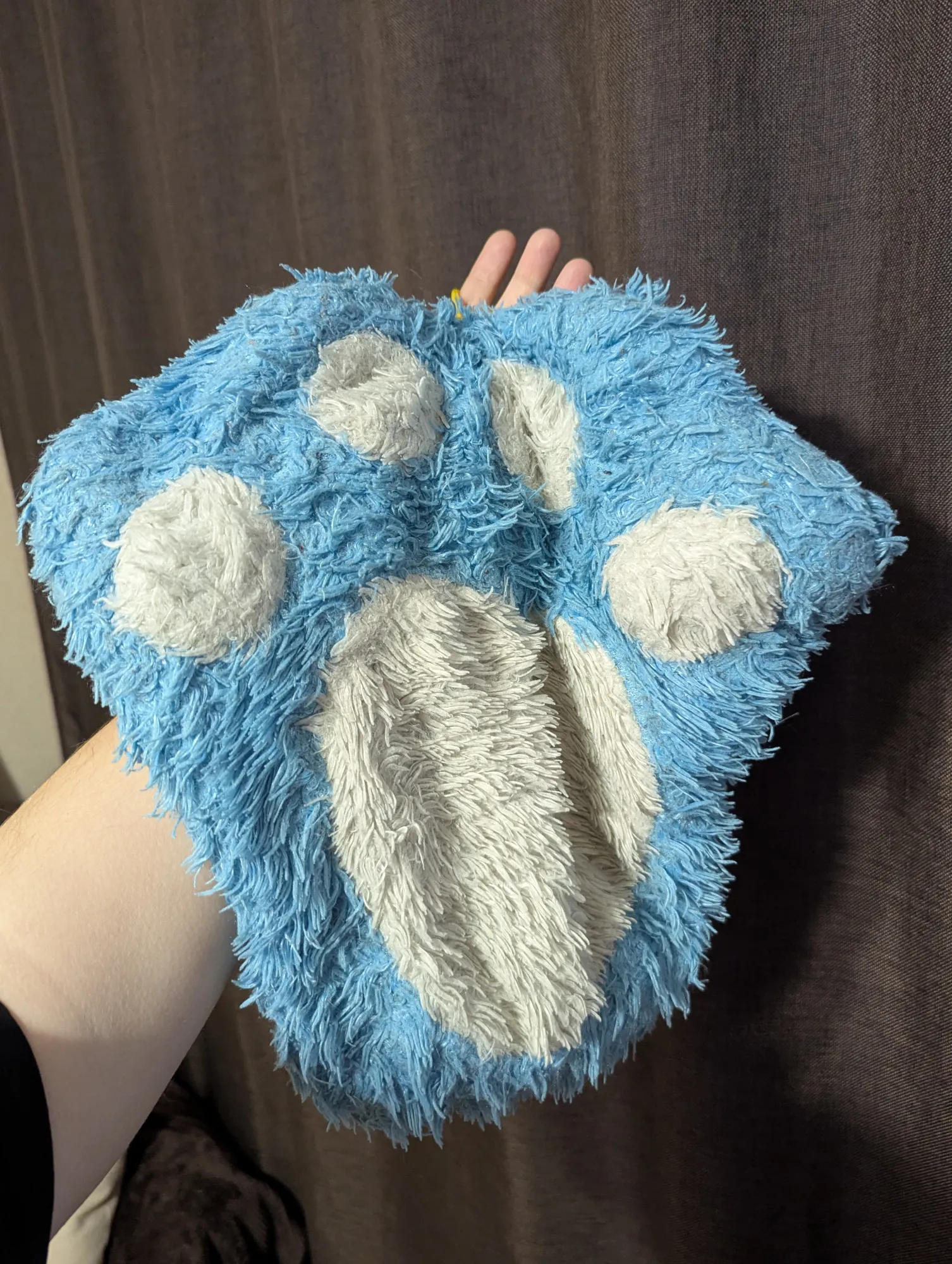 Этой игрушке тоже много лет. Ещё во времена школы брату в этой лапе девочка подарила целую гору «шипучек». Когда их доели, я набила её холлофайбером и с тех пор при засыпании подкладываю под шею.