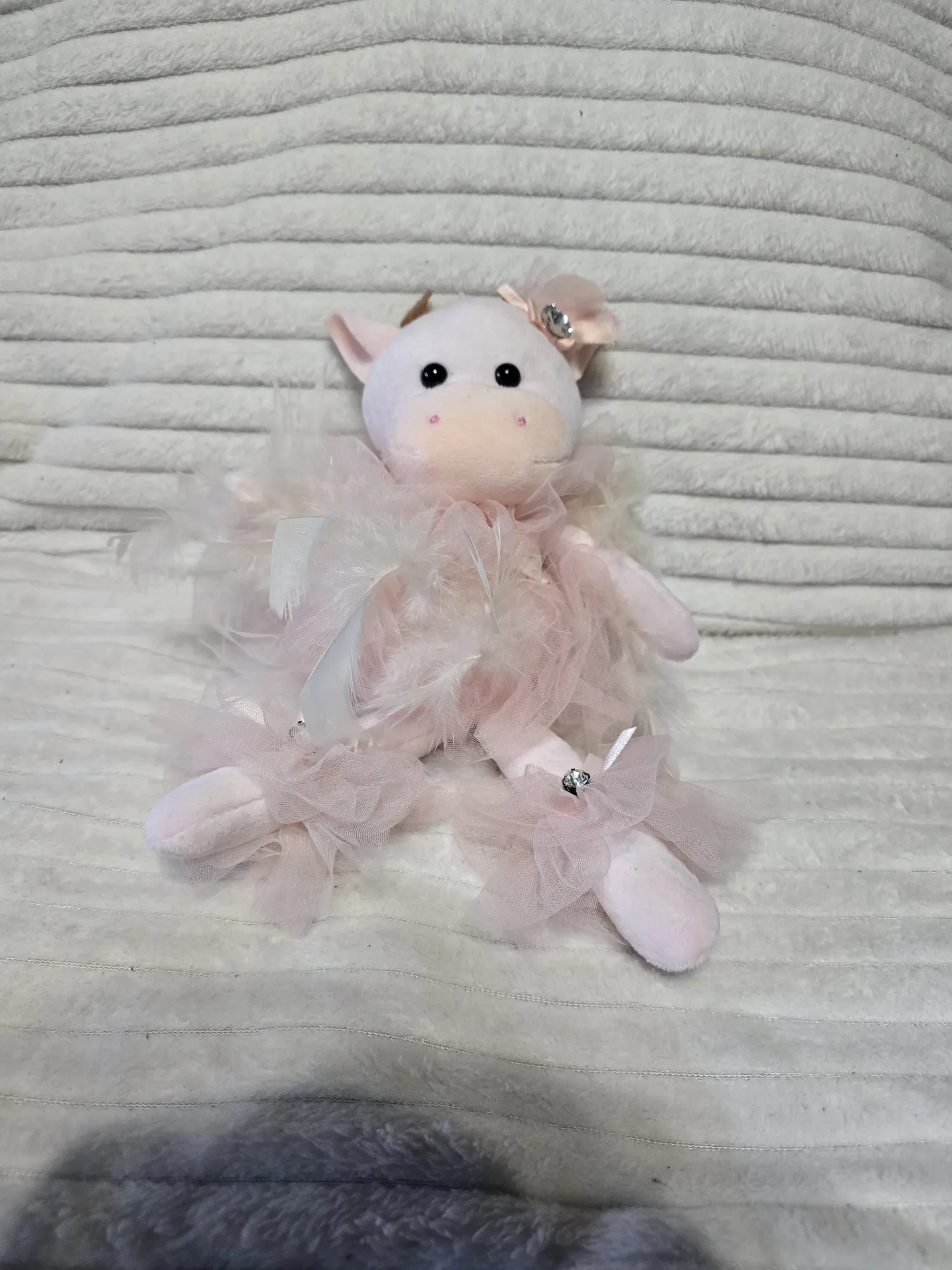 Подарена коллегой в полиции на 8 марта. Розовая дама в перьях среди остальных плюшевых спермобаков в моей постели))