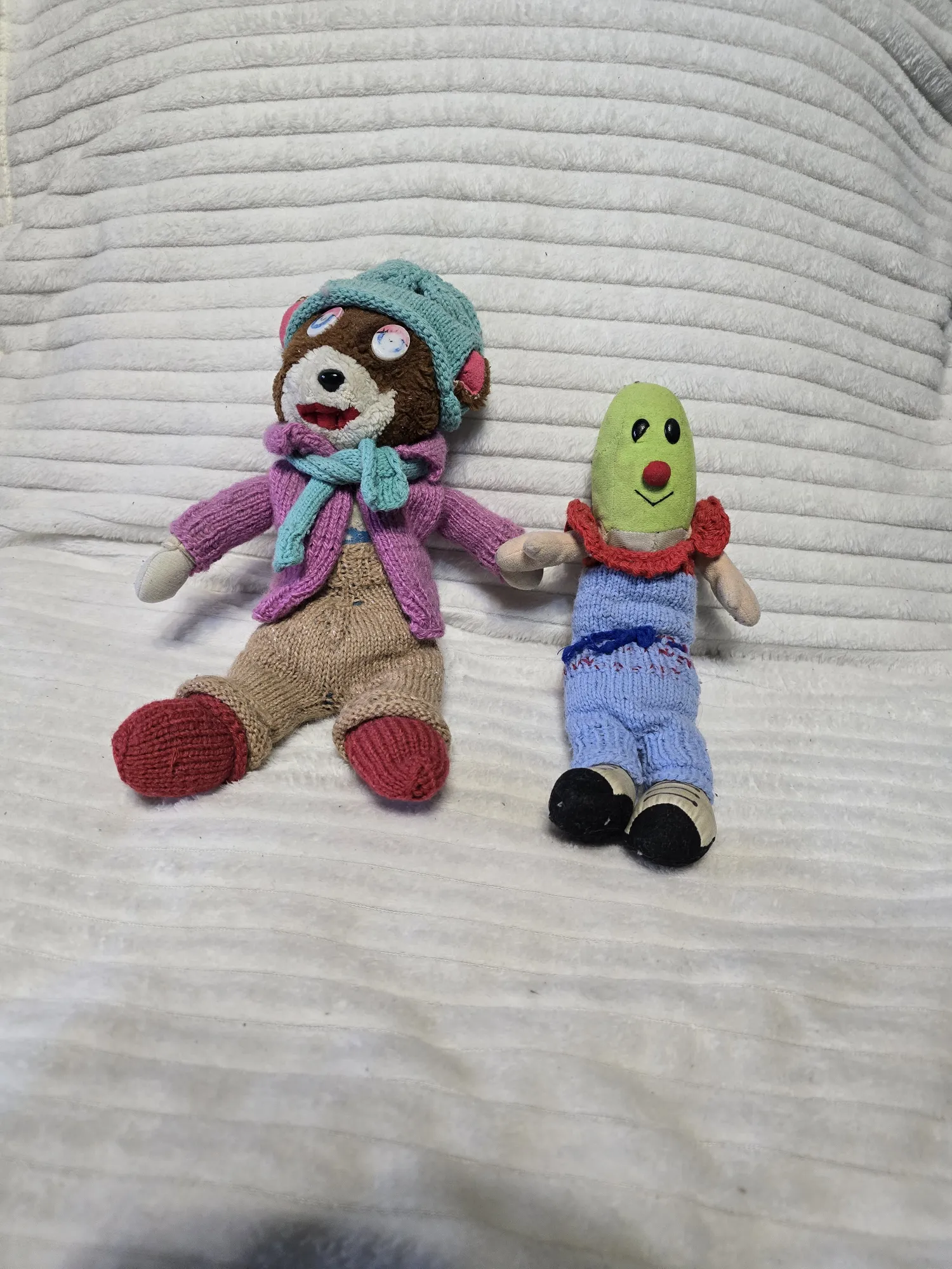 В силу разъёбных игр, они потрепались сильно, поэтому там было 2 выхода: либо перешивать, либо заебенить им наряды. Моя мама взялась за второе и связала им одежду, поэтому герои детских боевиков превратились в няшек-ромашек :D
