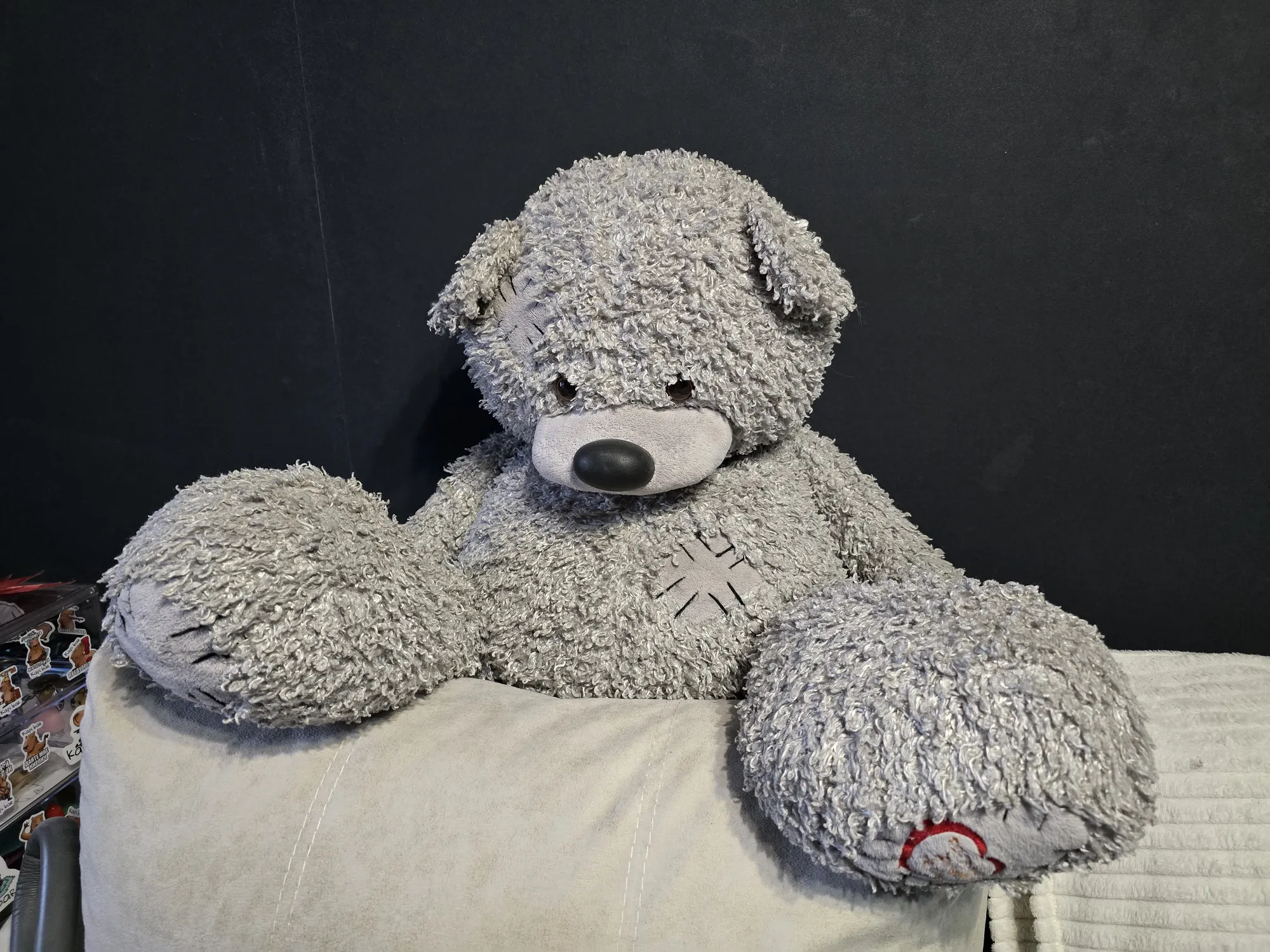 Подарила мне его мама ещё в школьные годы - мы с одноклахами после уроков прогуливались по рынку и там сидел он. И его все деффки хотели. И я в том числе. Как-то прошлись там с мамой, я его ей показала и она вылила, мол цена за такую большую и красивую игрушку - это не много (не помню, скок было), давай возьмем! Идём как-то опять после уроков, а девки в ахуях: "его купили!!!((". А он у меня) Так ко мне и попёрли кучкой, все хотели его пожмякать :)