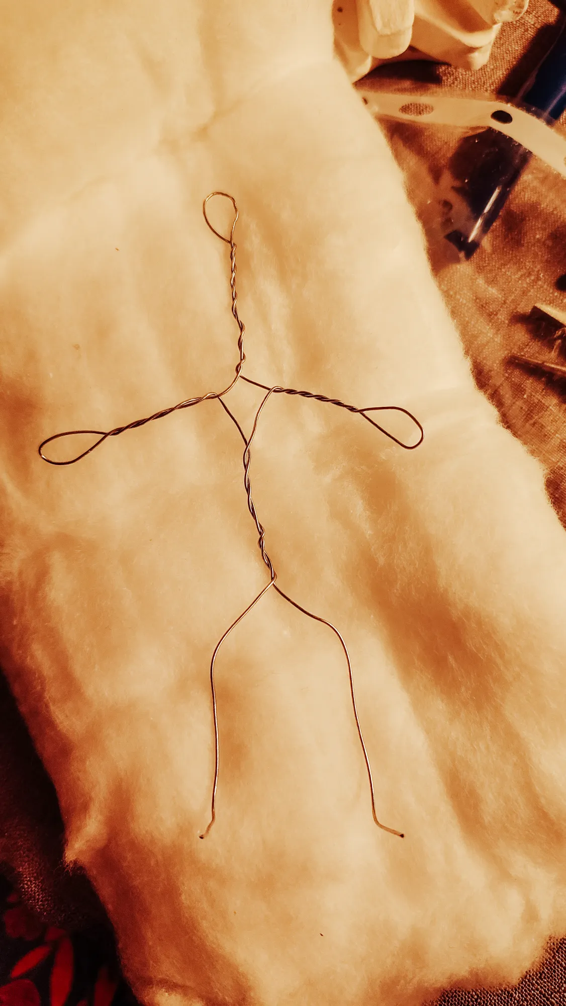 Итак, сначала я скрутила каркас из проволоки, чтобы потом в процессе можно было согнуть ручки и ножки как мне надо
