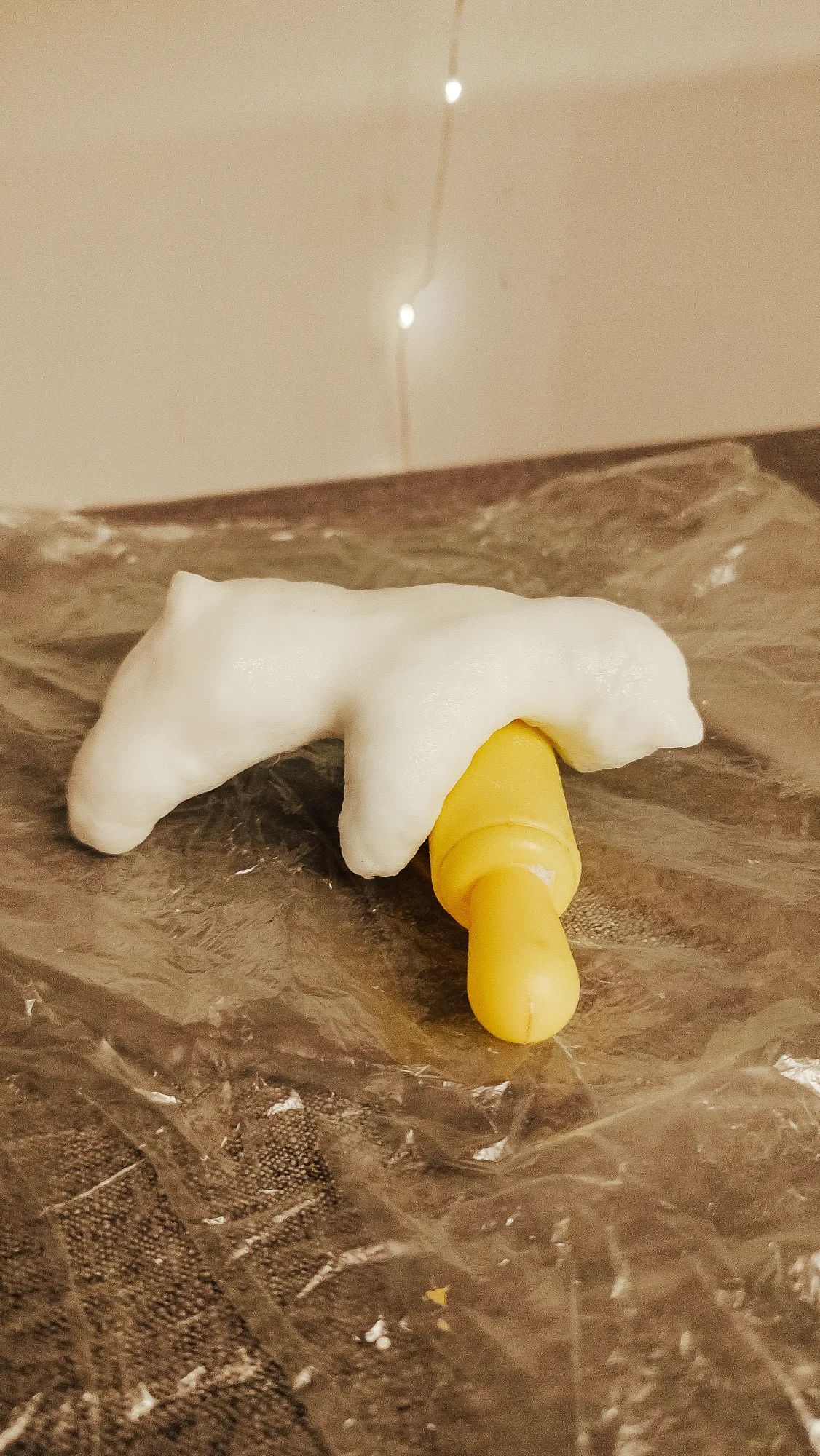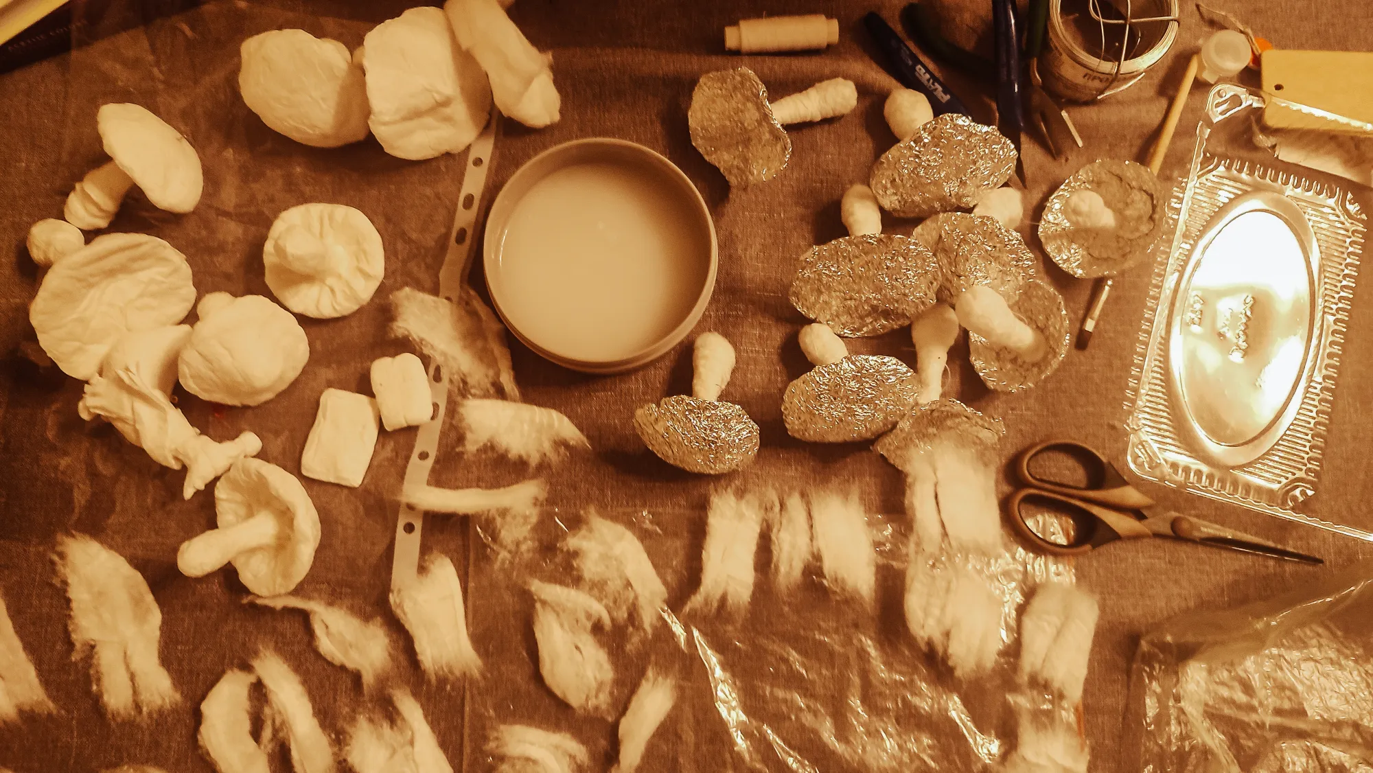 Вату нужно наложить на грибочек и жирненько промазать клейстером, чтобы он весь пропитался. И главное по сильнее прижимать вату, чтобы при высыхании гриб не сморщился.