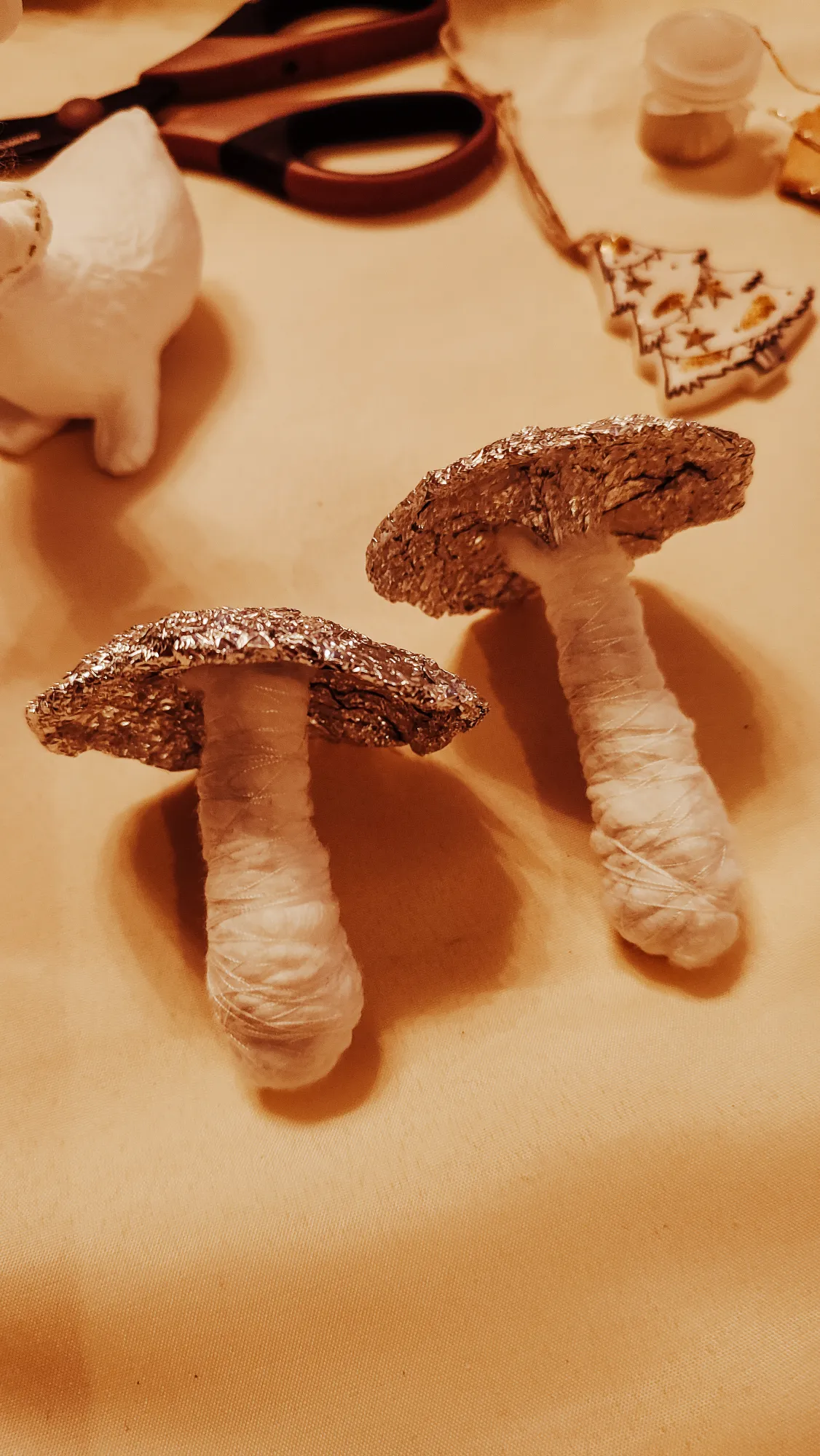 Сходила на мастер-класс, там сделала гуся и раскрасила уже готовый гриб, потому как по мокрой вате расписывать игрушку не получится. А когда вернулась домой решила сама накрутить грибов пачку и за одно на рукодел пост запилить)