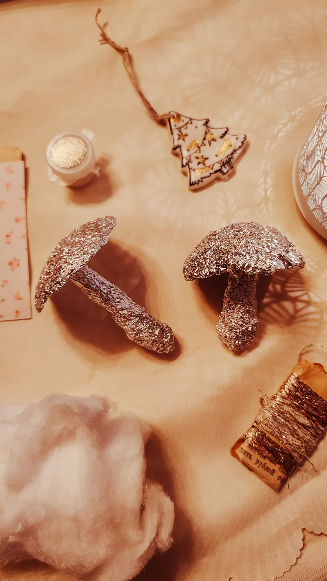 Затем все делается по аналогии с грибами) сначала накрутила на каркас заготовку из фольги