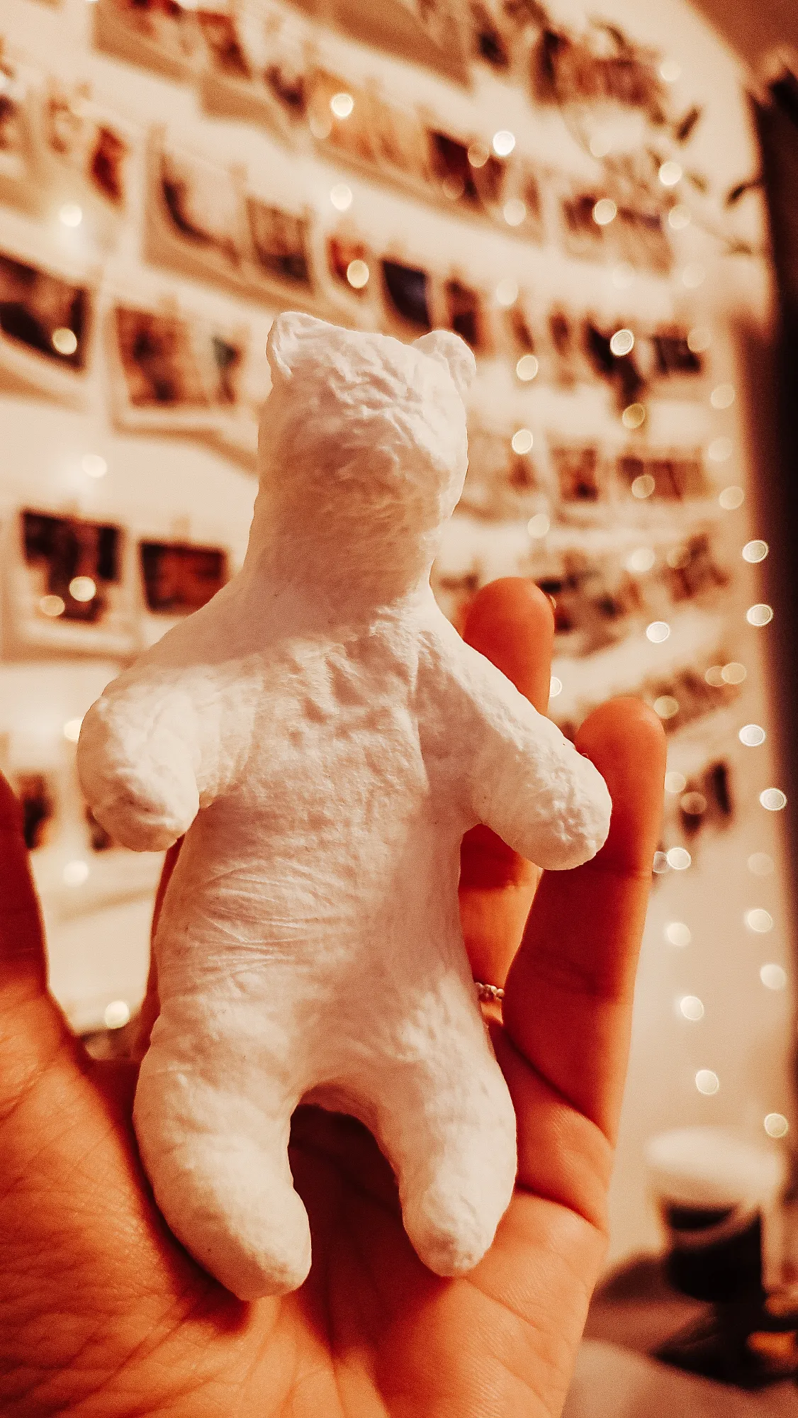 После этого мишку я еще дорабатывала, так как после сушки мне не все понравилось. Где-то остались видны нитки. А еще в голове наконец-то уложилось то, как я хочу видеть итоговую версию, поэтому у мишки появился шарфик, а еще их стало двое)
