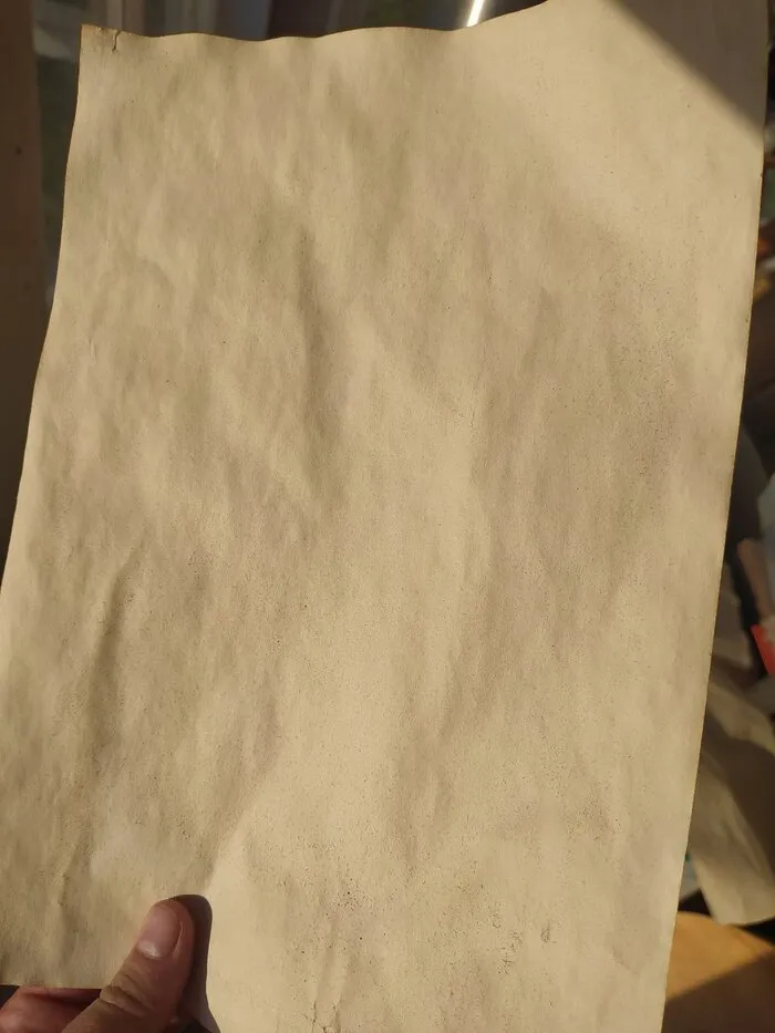 Изначально я хотел сделать "старую" бумагу, просто распечатав на них текстуру. План провалился потому что чернила в принтере не бесконечные) Но есть пара листов для сравнения результата. Сверху "чайный" лист, снизу запечатанный.