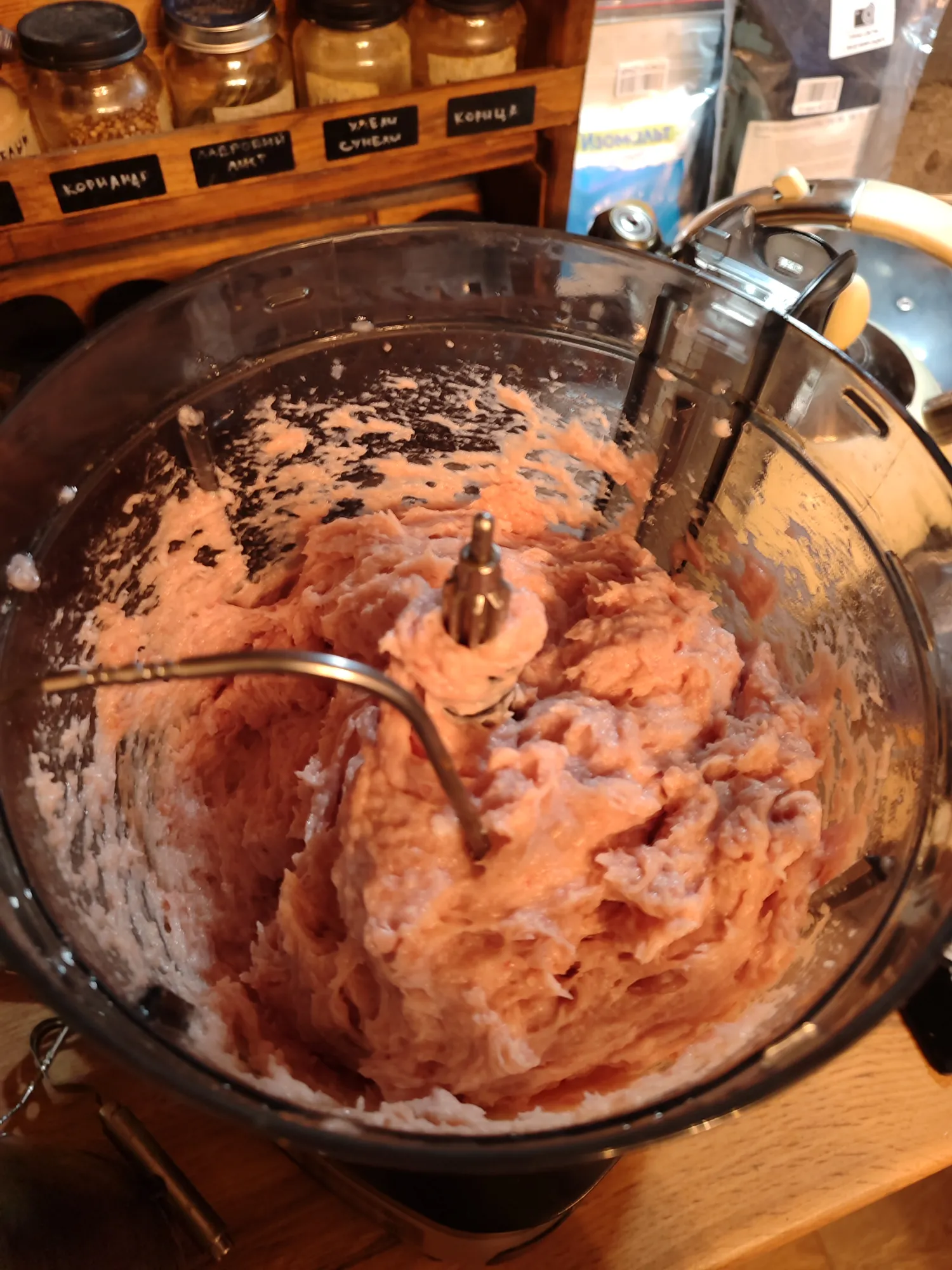 Вымешиваем до тех пор, пока мясо не станет матово-липким.