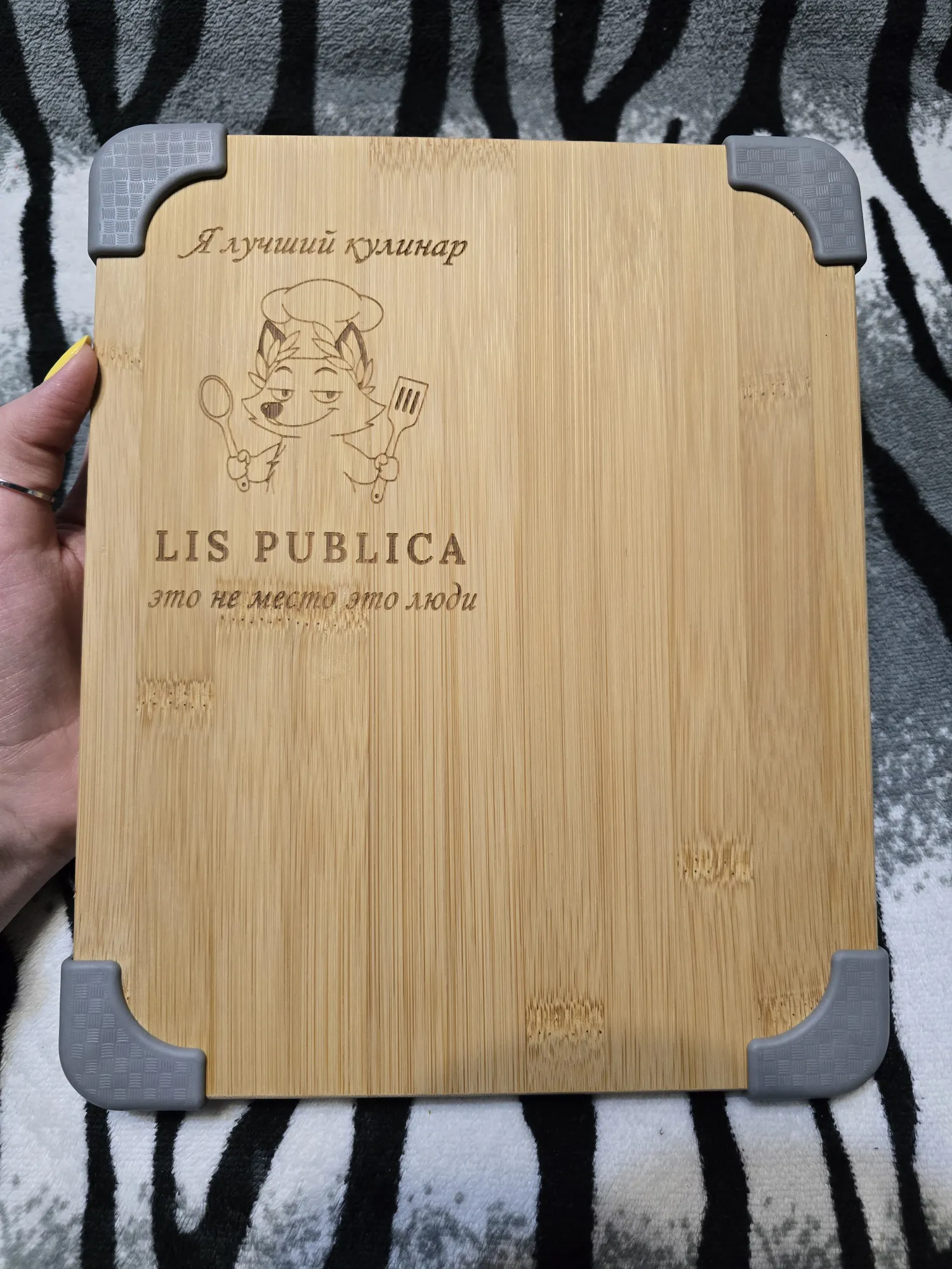 Далее достаём такую вот фирменную дощечку для резки! Вы пасмарите, какие уголочки!! Это шоб я не уебалась об неё, пока готовлю, заботливо))