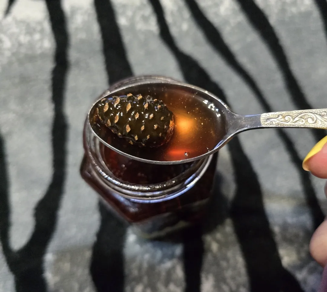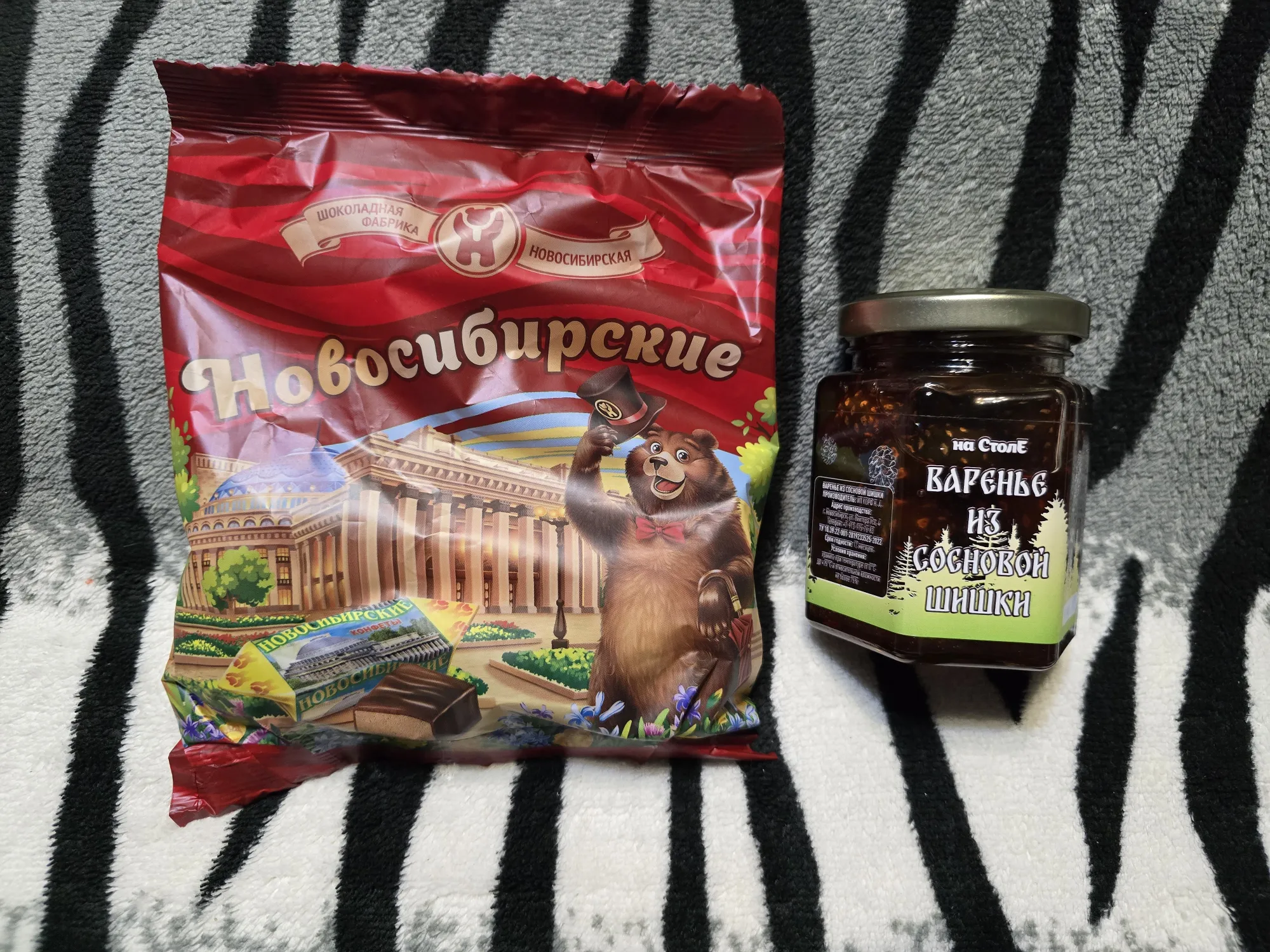 Встречают меня вкусные ништяки из более холодного края, чем мой - местные конфетки и варенье из шишек :)