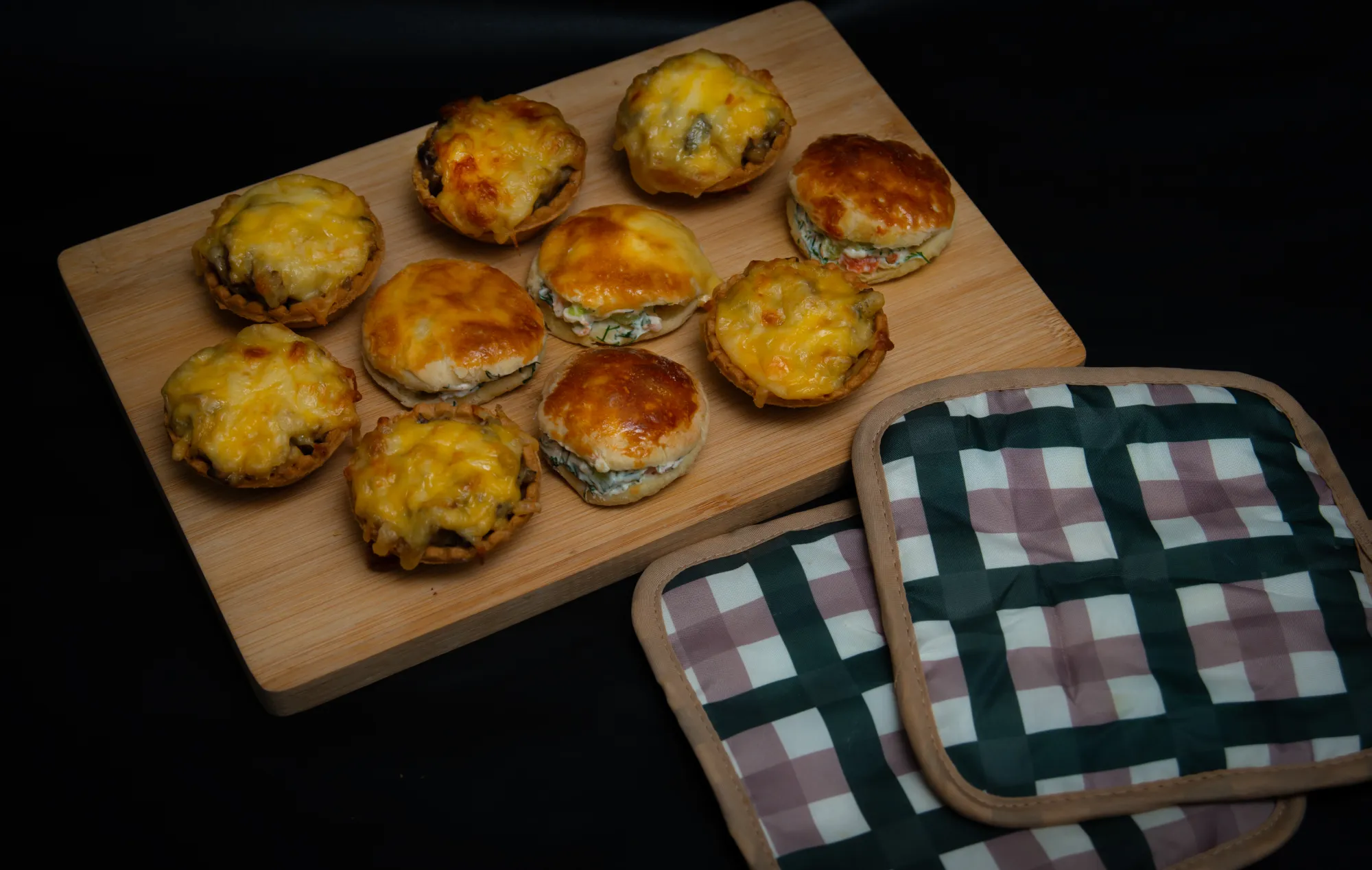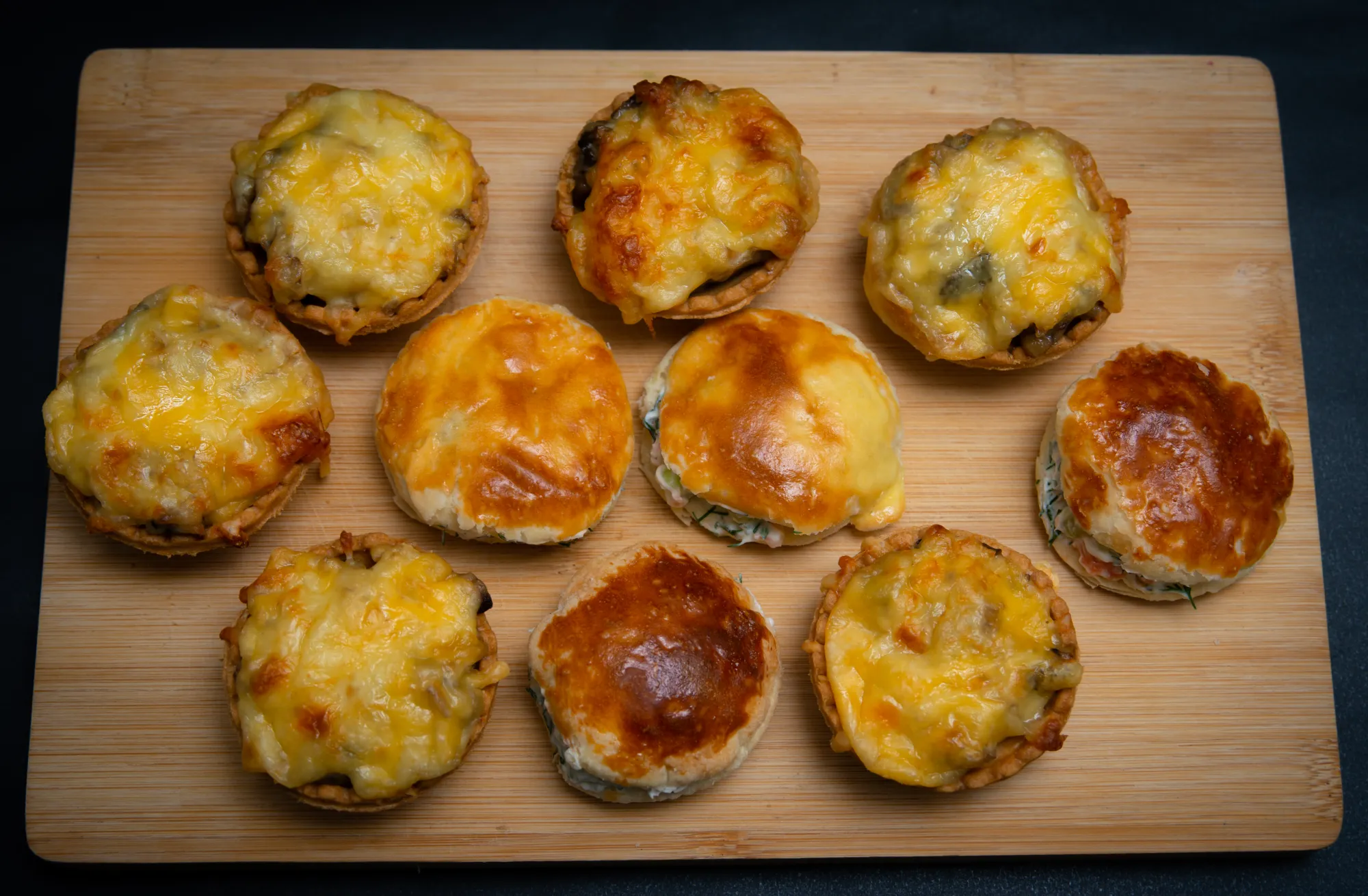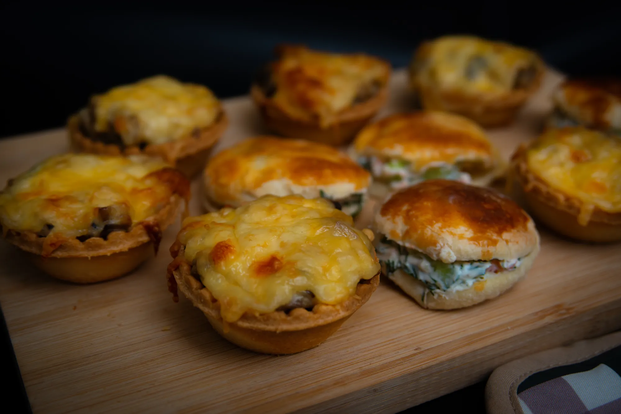 Делаем два вида закусок: жюльен в тарталетках и закуска с рыбой и слоеным тестом. Вроде все просто.