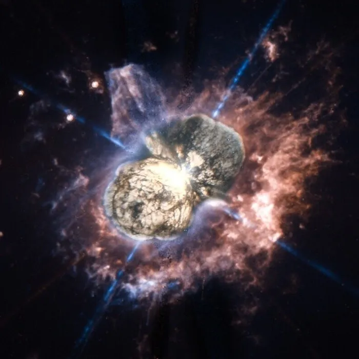 В созвездии Киля, на расстоянии примерно 7 500 световых лет от Земли, находится система Эта Киля — одна из самых массивных и ярких звездных систем нашей Галактики. Масса главной звезды этой пары превышает массу Солнца более чем в 100 раз, а масса меньшего компаньона составляет около 50 масс Солнца. Светимость системы превосходит солнечную примерно в пять миллионов раз.