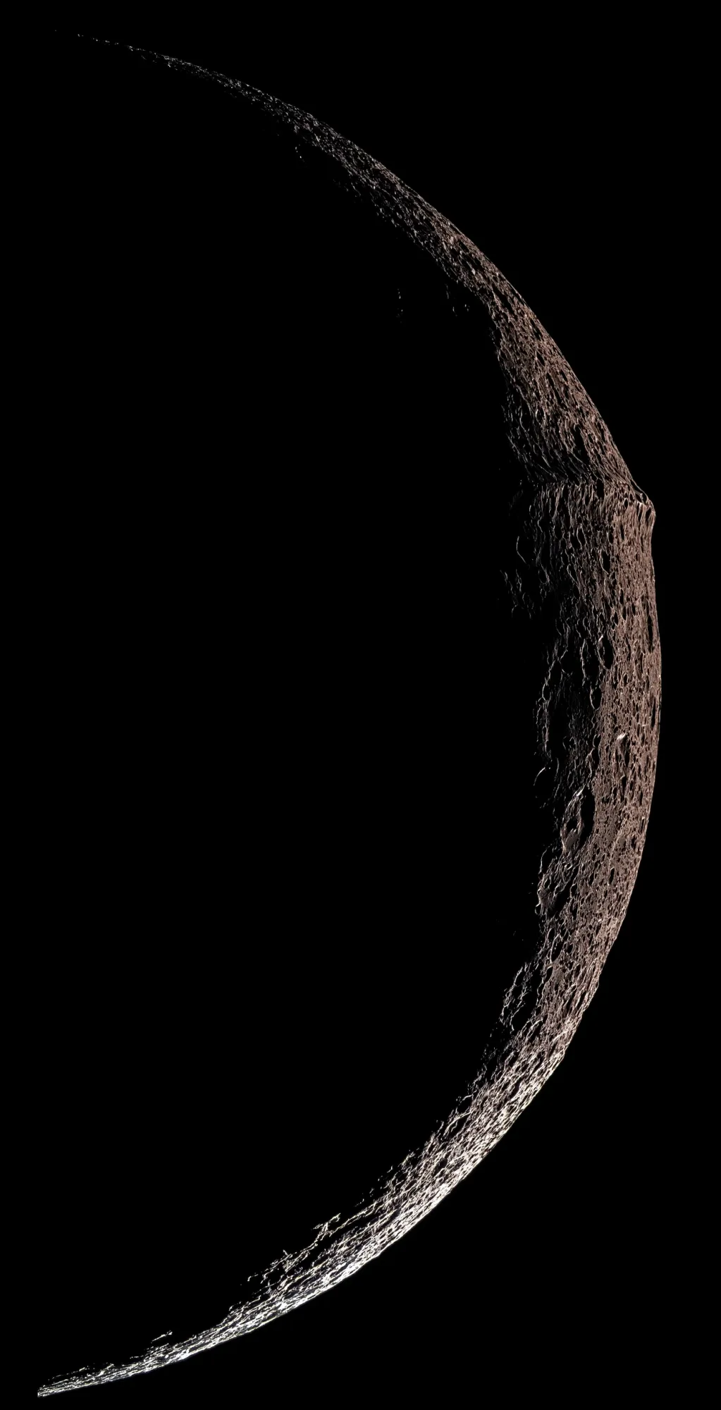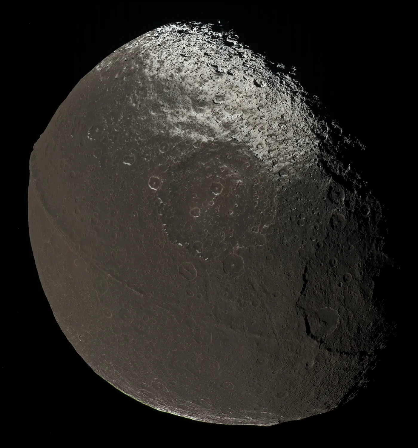 На снимках, сделанных зондом «Кассини» в 2007 году, - экваториальный хребет Япета, третьего по величине и самого дальнего из крупных спутников Сатурна. Горный хребет, который называют «стеной Япета», почему-то разделяет Япет по экватору, делая его похожим на грецкий орех.