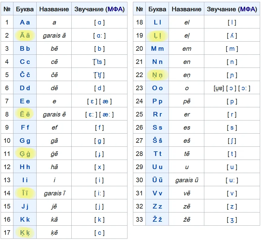 Совпадают только Č, Š, Ū и Ž. Так что на буквы с галочками не смотрим. И букву U с палкой придётся запомнить как общую. Представьте, что это закрытая кастрюля, из которой сейчас полезут ваши невообразимые знания о лингвистике.