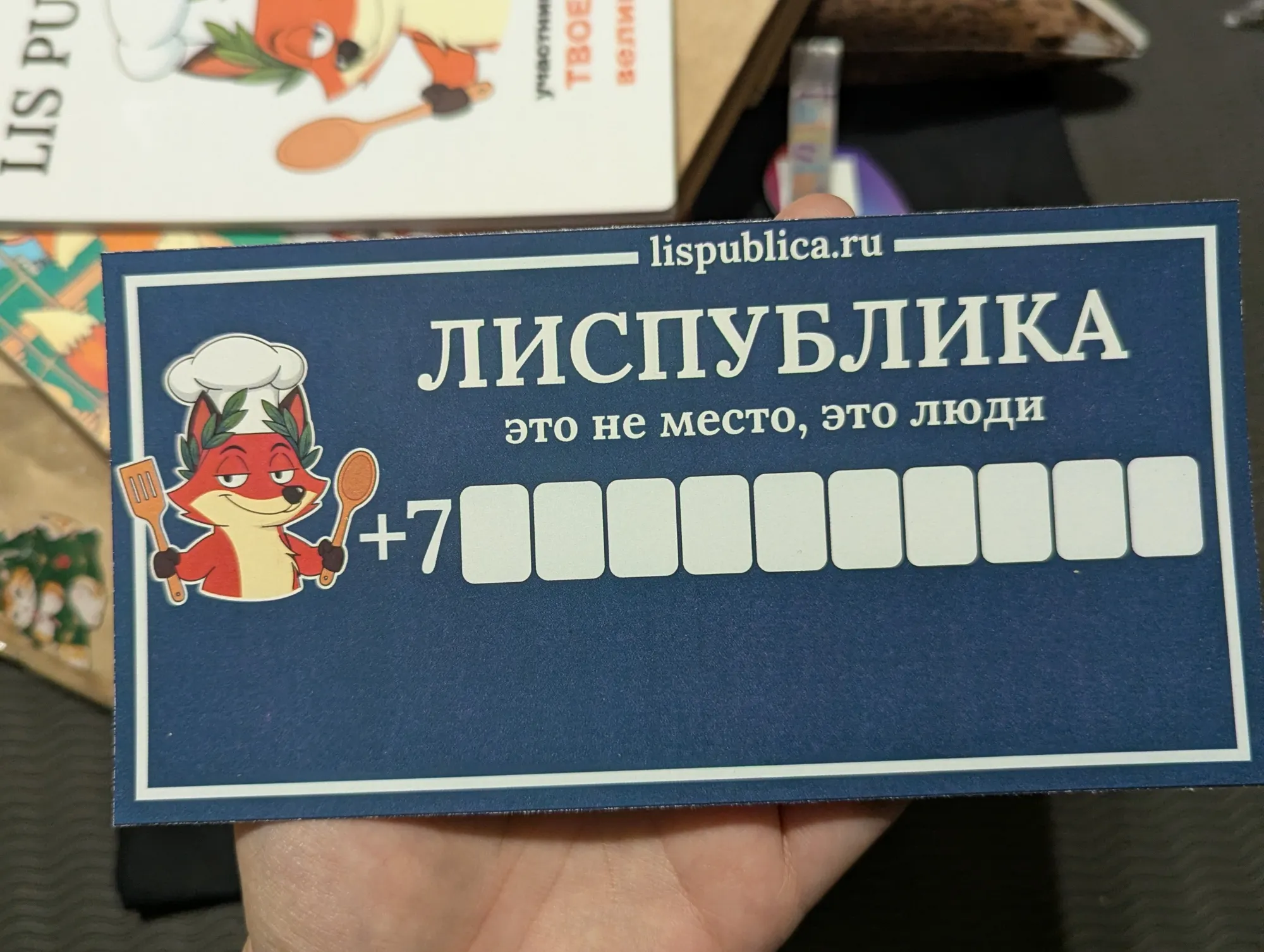И завершает парад подарков уже традиционная табличка для номера телефона.