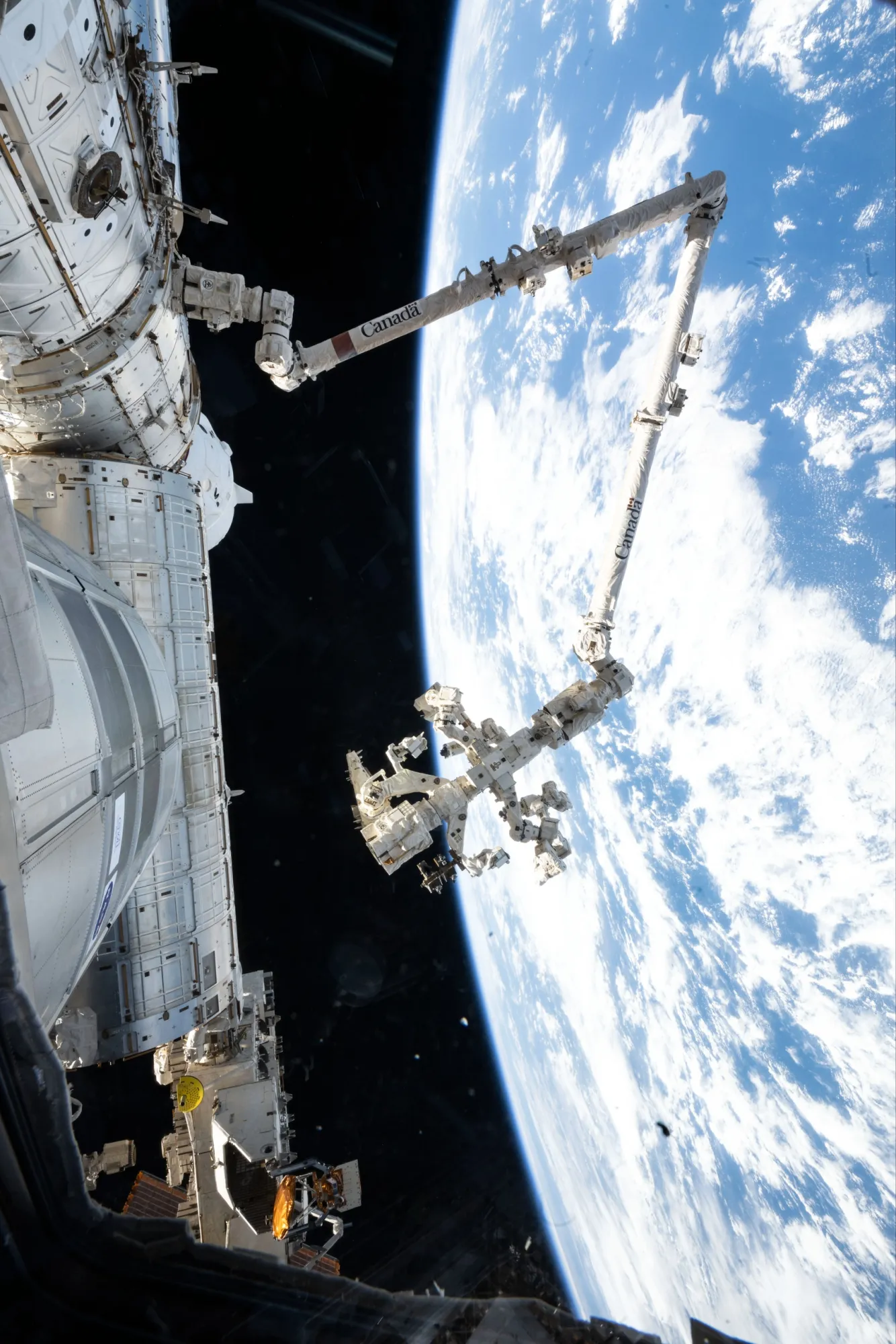 Канадарм2 — это система, используемая при обслуживании и сборке станции. Длина основной части — 17 метров.