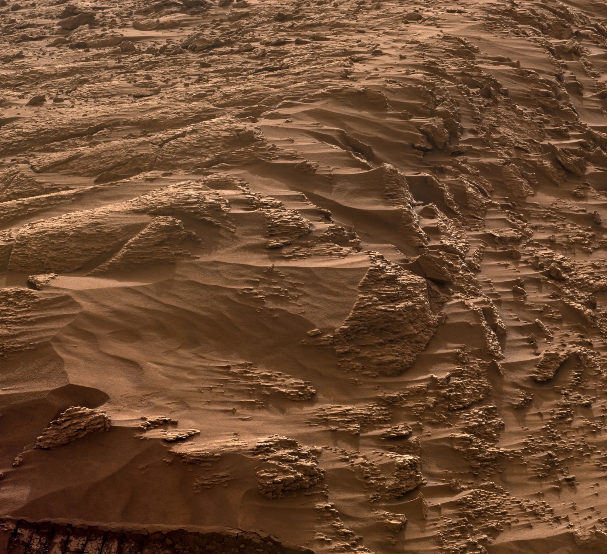 Марсоход NASA «Персеверанс» сделал этот снимок с помощью своей камеры Mastcam-Z 8 сентября 2025 года — на 1618-й марсианский день (сол) своей миссии. На изображении запечатлён участок местности, получивший название «Мон-Мюзар» (Mont Musard). Здесь же виден и другой район — «Лак-де-Шарм» (Lac de Charmes), где команда марсохода планирует в ближайший год искать новые образцы горных пород для бурения и сбора кернов.