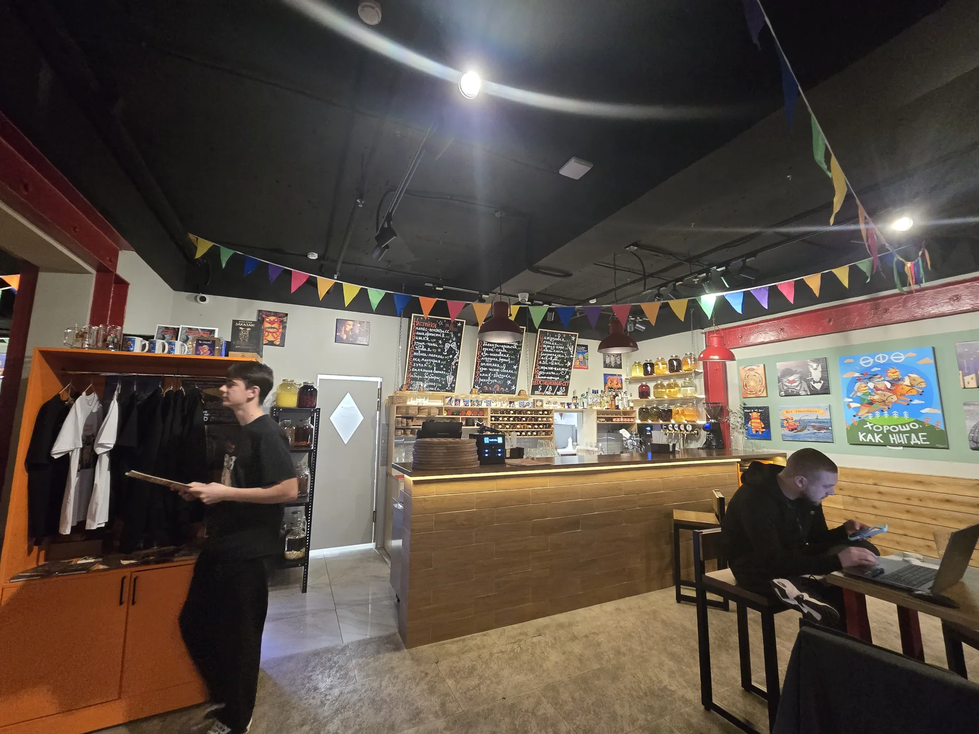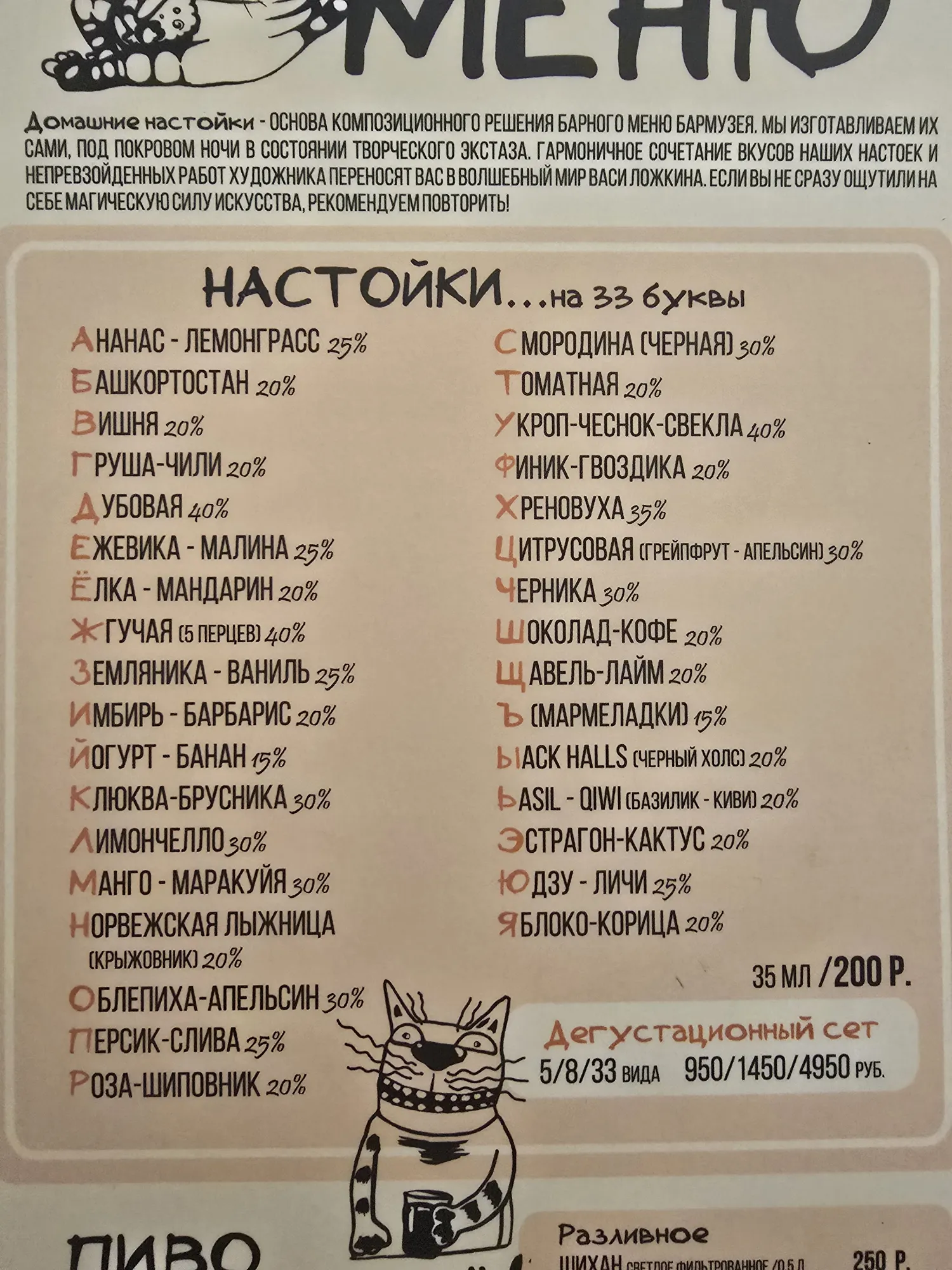 Нам этот бар порекомендовали, сказав, что там вкусные чебуреки и куча прикольных настоек - 33 штуки: на каждую букву алфавита. Полезла я смотреть в сеть и меня зацепил ещё и антураж самого заведения.