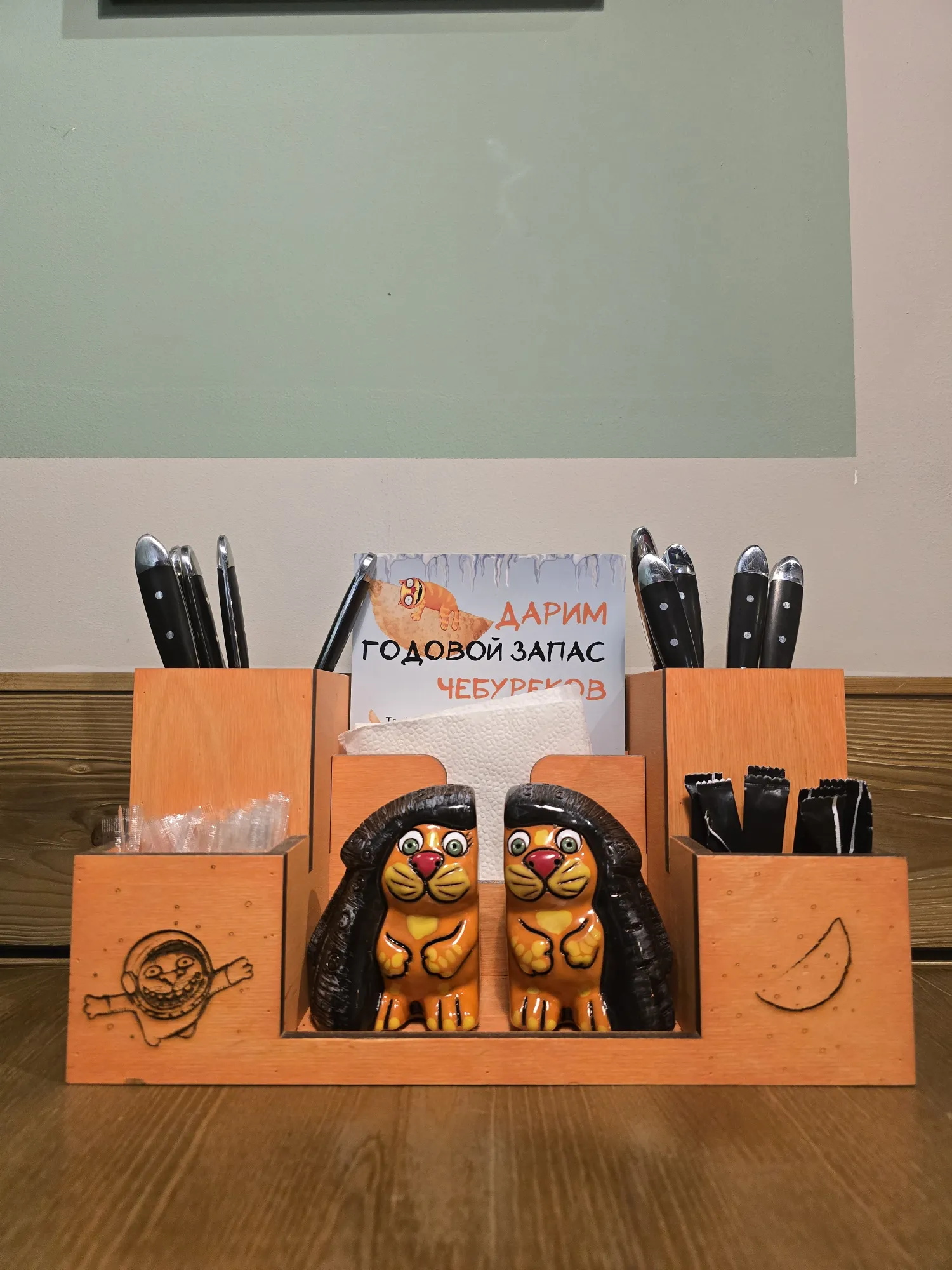 Ходили вчетвером, у двух парней из этой огромной кучи человек выпал выходной на понедельник, поэтому в заведении было почти пусто. Оно и хорошо: и тишина, и пофоткать можно спокойно, да и еду быстро приготовят.