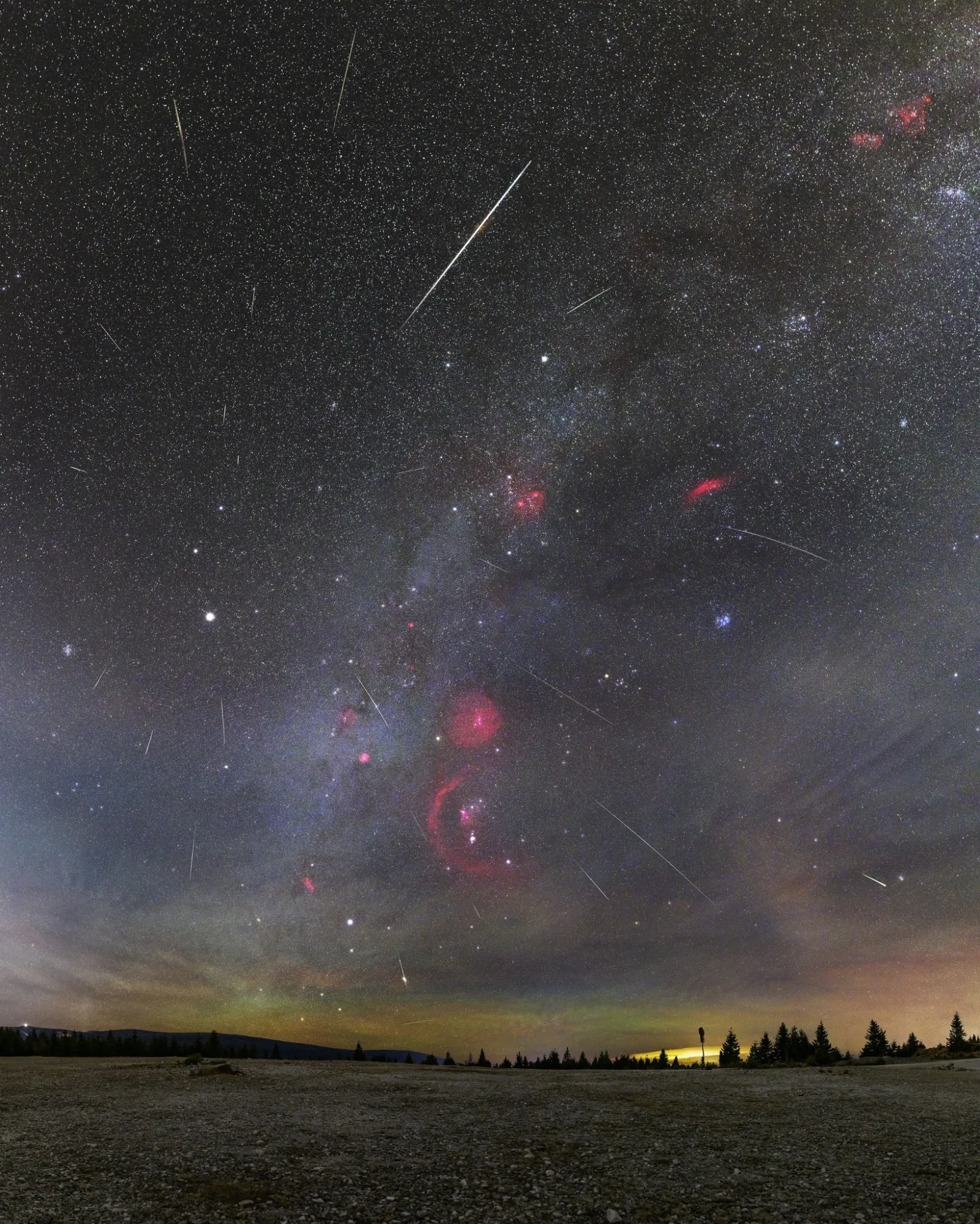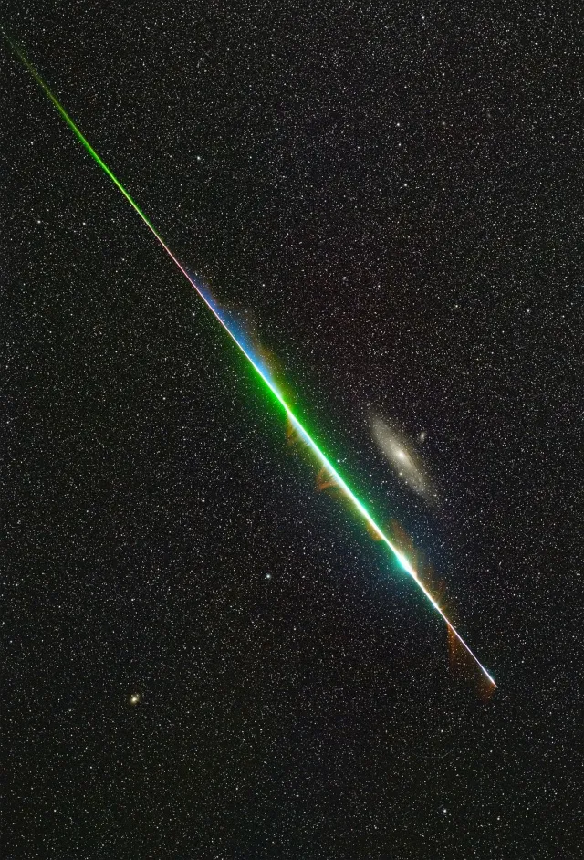 Когда Земля проходит сквозь этот шлейф (в октябре и в мае), они врезаются в атмосферу Земли со скоростью 66 км/с и сгорают, ну а мы видим "падающие звезды".