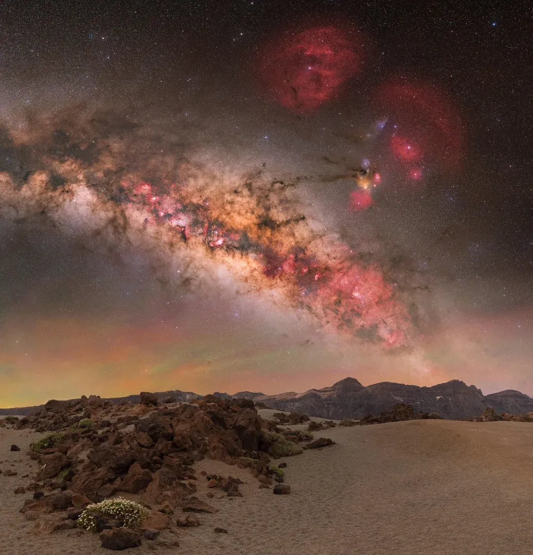 Низкочастотное излучение позволяет проникнуть сквозь темные облака пыли. Большие красные круги в плоскости Млечного пути - это остатки сверхновых, расширяющиеся облака газа, оставшегося после взрыва звезды. Более мелкие синие области обозначают звёздные ясли, где активно формируются новые звёзды. Помимо них на карте идентифицировано 98 000 источников, среди которых пульсары, планетарные туманности и далекие галактики на фоне.