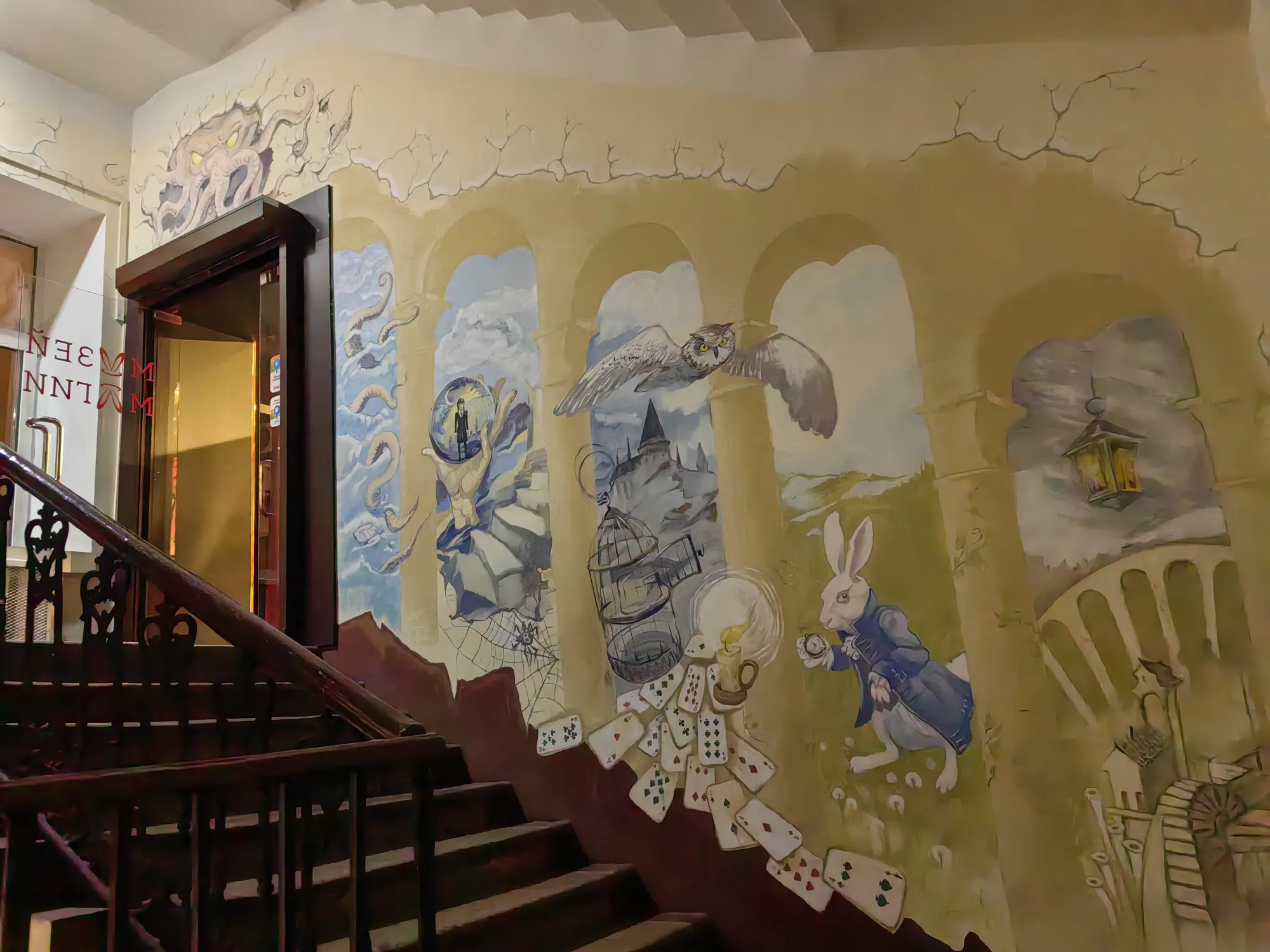Пространство небольшое, густо увешанное картинами, что не очень удобно. Но так как проект существует только на донаты и процент от продажи картин, претензий - ноль.
