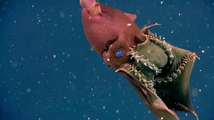 Кальмар-вампир выглядит так, словно прибыл на Землю с другой планеты. Это действительно один из самых необычных обитателей нашей планеты, напоминающий о том, что Мировой океан изучен всего на 3-5%.