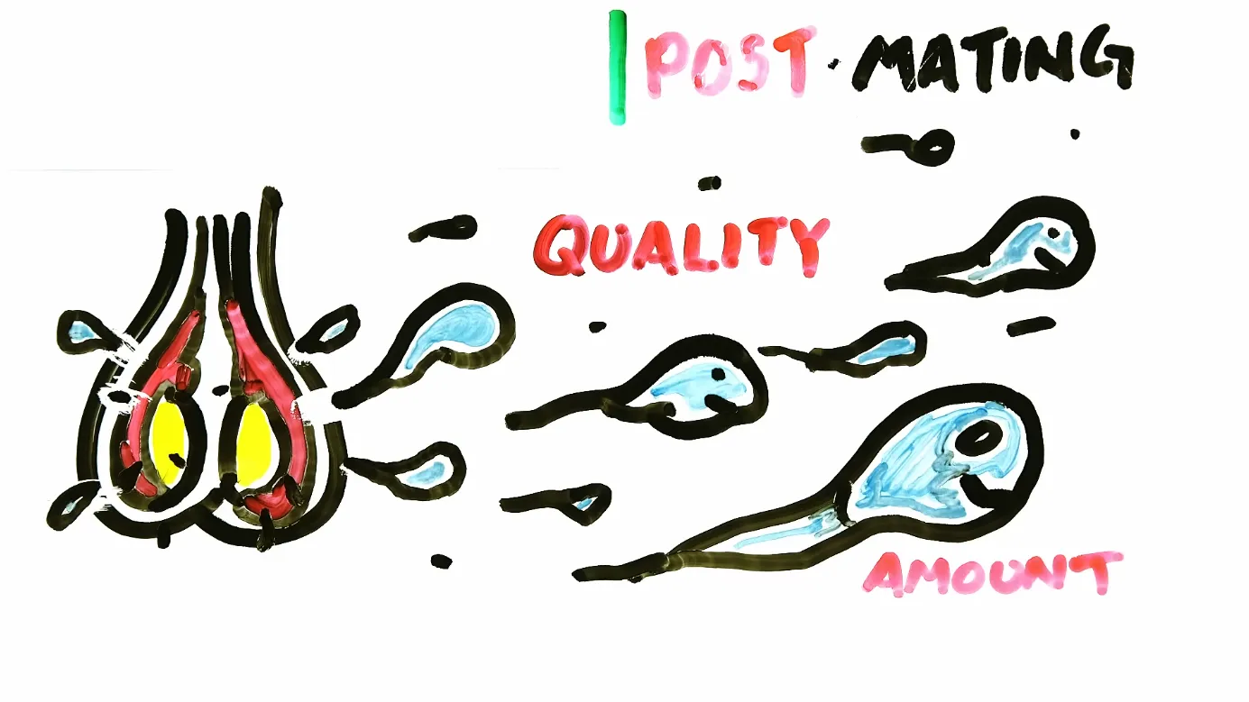 Послебрачный половой отбор связан с отбором, происходящим после спаривания — например, качество и количество производимой спермы в самих яичках. Успешность самца зависит от комбинации предбрачного и послебрачного успеха.