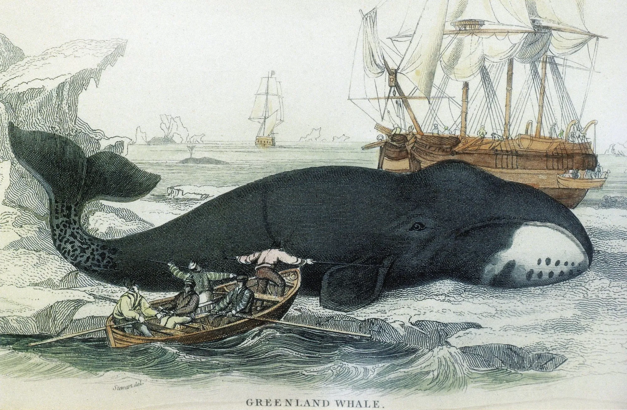 Гренландские киты весят в среднем от 75 до 100 тонн и занимают второе место по массе среди всех животных, уступая лишь синему киту. Это единственный вид усатых китов, обитающий исключительно в Северном Ледовитом океане, где их массивный череп служит тараном для пробивания морского льда. Чтобы выживать в столь суровой среде, гренландские киты в ходе эволюции обзавелись самым толстым слоем подкожного жира среди всех китообразных. Именно этот жировой слой в сочетании с невысокой максимальной скоростью плавания — всего около 10 километров в час — и сделал их излюбленной добычей китобоев. Промышленный китобойный промысел гренландских китов фактически прекратился в начале XX века, полностью сойдя на нет к 1921 году. К тому моменту популяция сократилась до менее чем трёх тысяч особей. К счастью, после прекращения промысла некоторые популяции существенно восстановились: в западной части Арктики численность гренландских китов оценивается сегодня примерно в 12 500 особей.