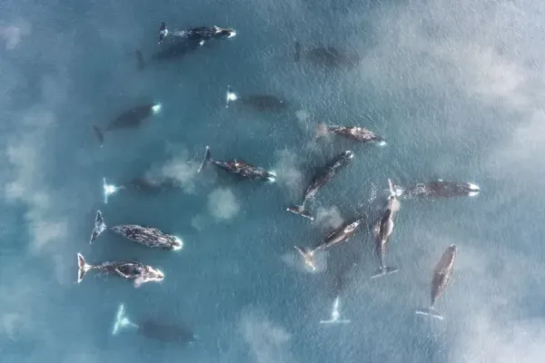 Гренландские киты весят в среднем от 75 до 100 тонн и занимают второе место по массе среди всех животных, уступая лишь синему киту. Это единственный вид усатых китов, обитающий исключительно в Северном Ледовитом океане: массивный череп позволяет им пробивать морской лёд. Чтобы выживать в столь суровой среде, гренландские киты в ходе эволюции обзавелись самым толстым слоем подкожного жира среди всех китообразных. Именно этот жировой слой в сочетании с невысокой скоростью плавания — всего около 10 километров в час — и сделал их излюбленной добычей китобоев. Промышленный китобойный промысел гренландских китов фактически прекратился в начале XX века, полностью сойдя на нет к 1921 году. К тому моменту популяция сократилась до менее чем трёх тысяч особей. К счастью, после этого некоторые популяции существенно восстановились: в западной Арктике численность вида оценивается сегодня примерно в 12 500 особей.