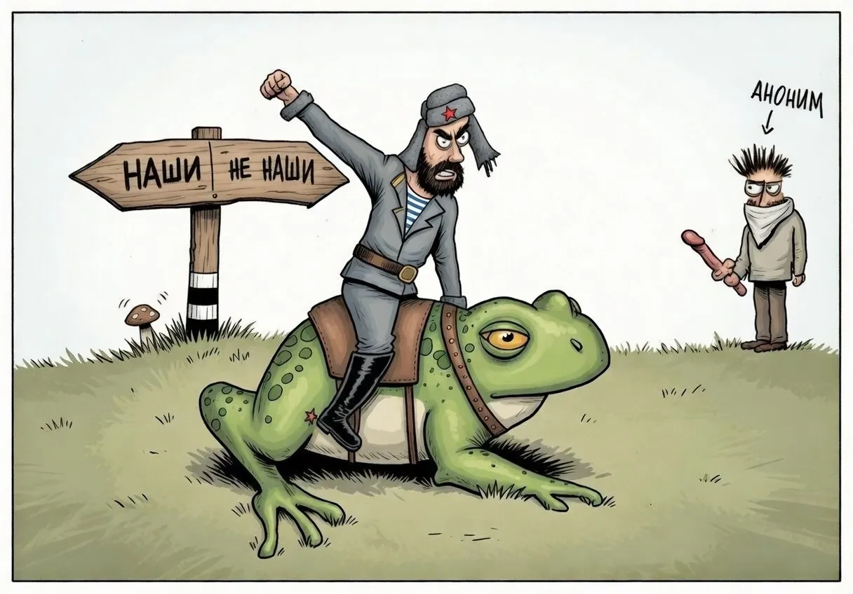 Сначала описание сути действия: простой мужик грозит кулаком врагам Лиспублики. Самым худшим её врагам. А в этом ему помогает его верная жаба. Вместе они уже долгое время бдят на дальних рубежах. Ну и вы, думаю, понимаете, что в этой вселенной жабье нашествие уже случилось. Жабы уже не просто здесь - они с нами!