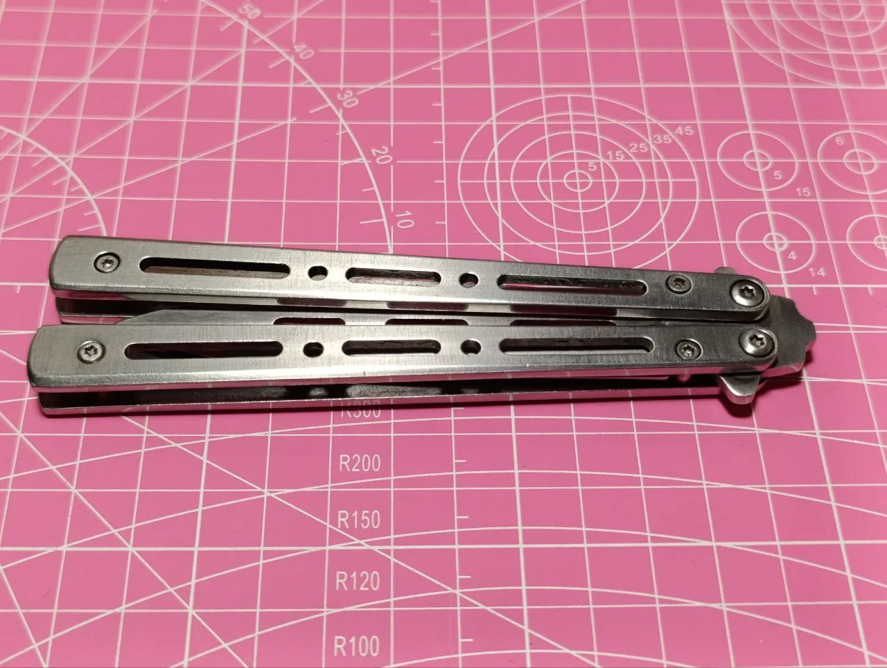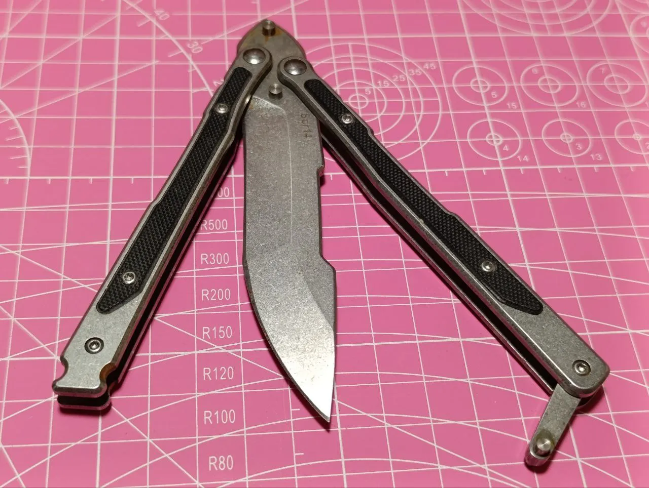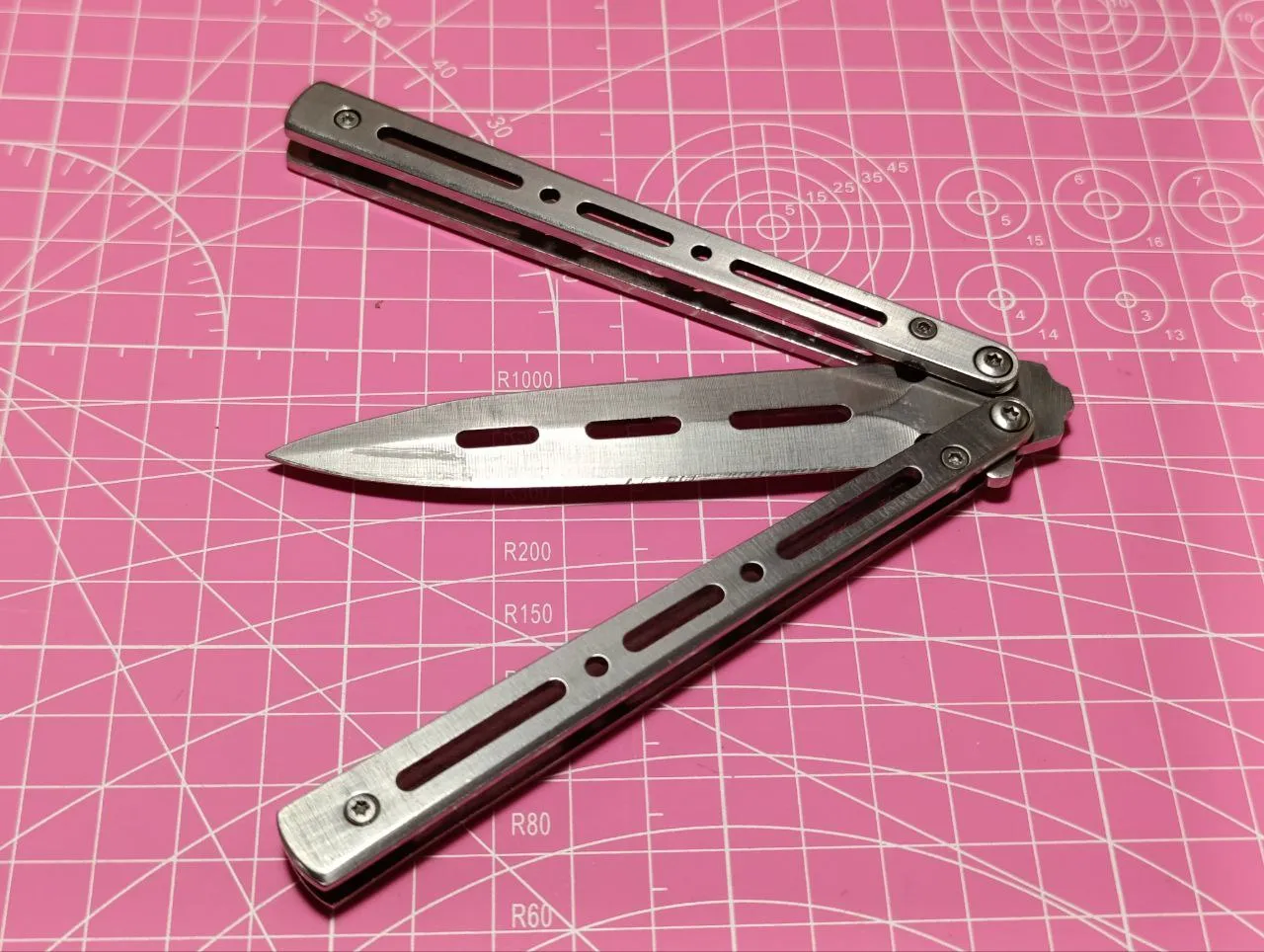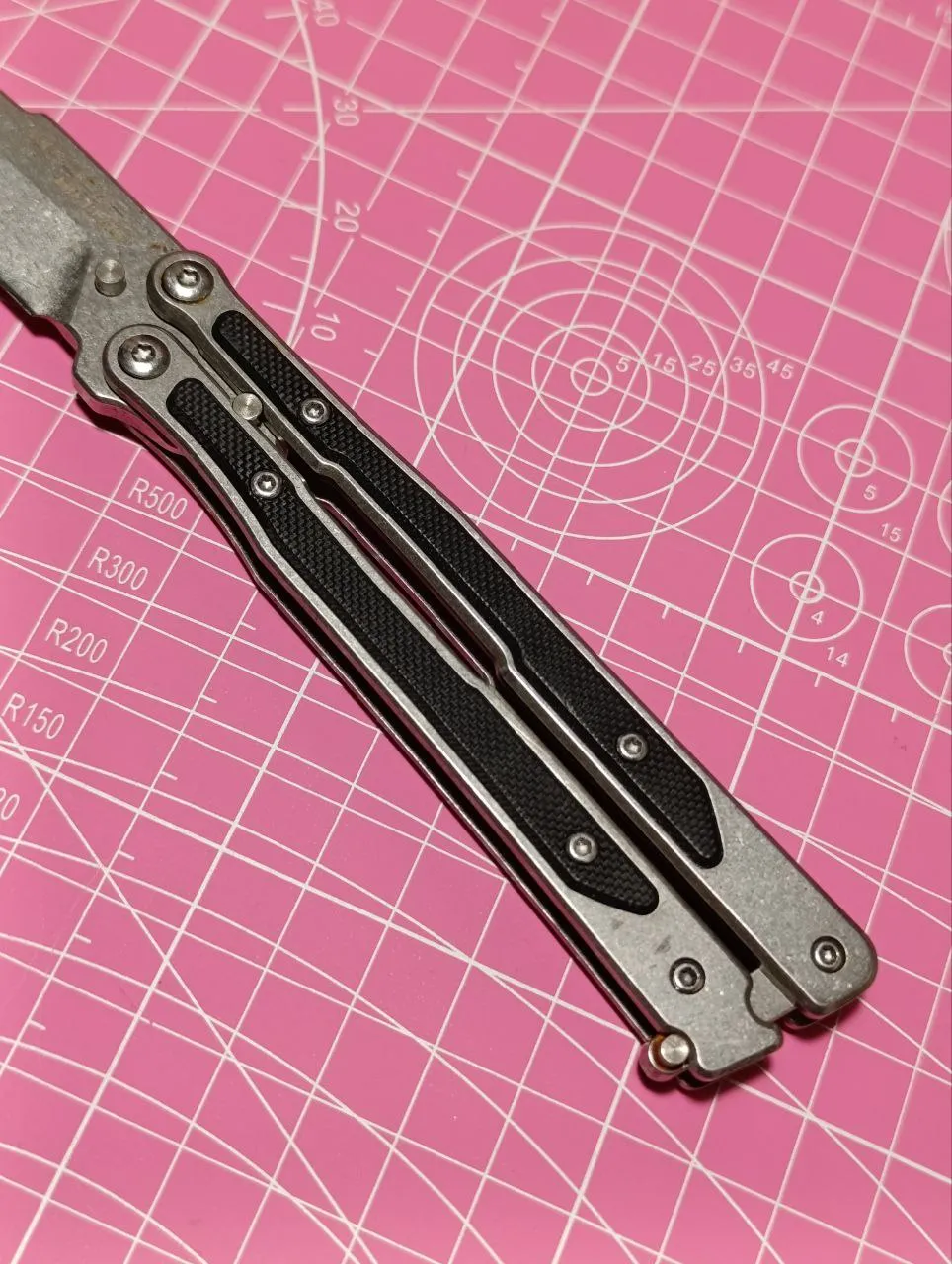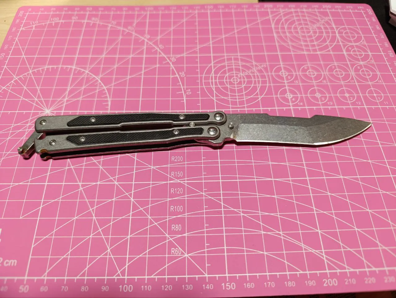 вот представляю вашему вниманию два последних экспоната: один из них полностью функционален - вот он, показываю, ножик-бабочка или балисонг, тоже так называется