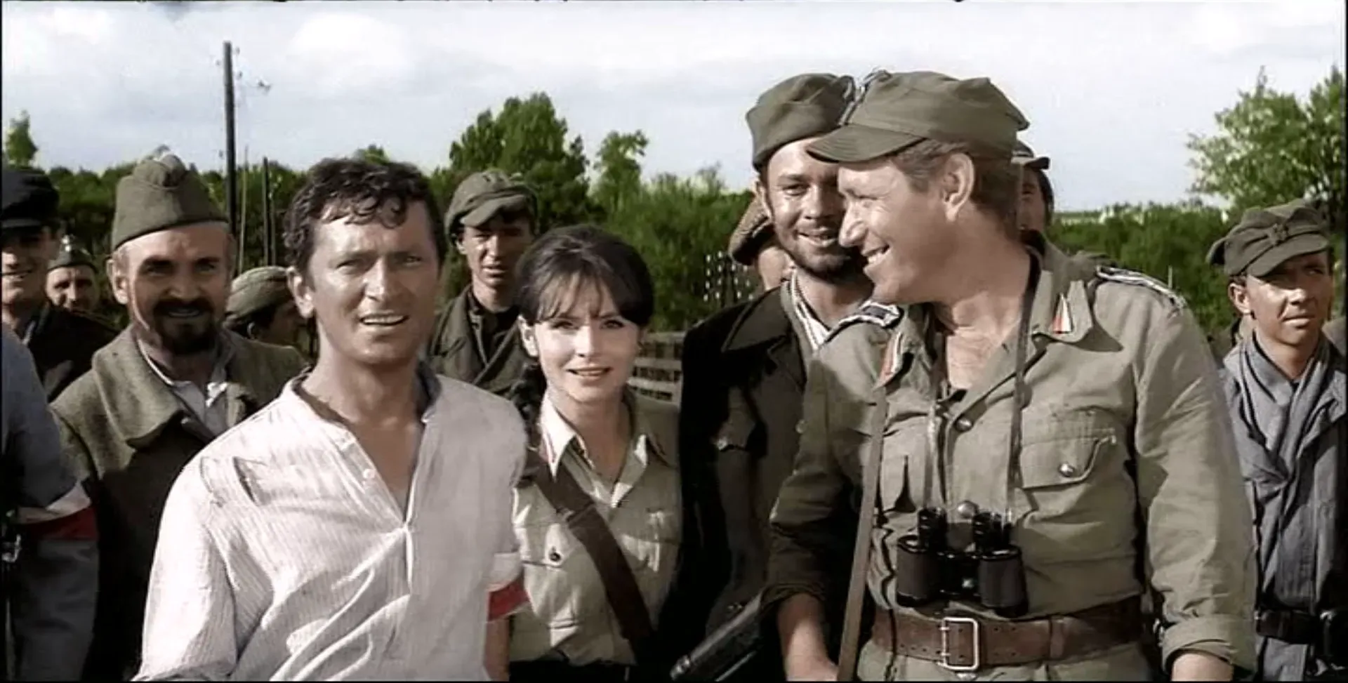 Я смотрел в цветной версии, потому что черно-белая сохранилась только в плохом качестве. И должен сказать, колоризацию провели довольно бережно, со вниманием к деталям. Иногда даже нельзя сказать, что это раскрашенный чёрно-белый фильм. Правда, встречаются и ляпы. И если поменявшая цвет юбка Терезы не так важна, то уж флаг Югославии — это серьёзно. Он почему-то стал зелёным.
