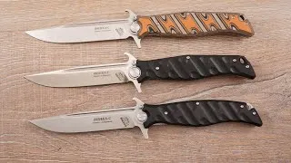 Существуют версии ножа с стали D2, VG-10, а также с осевым узлом на керамических подшипниках или шайбах.