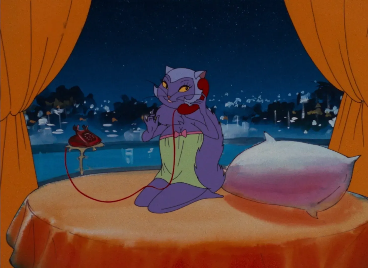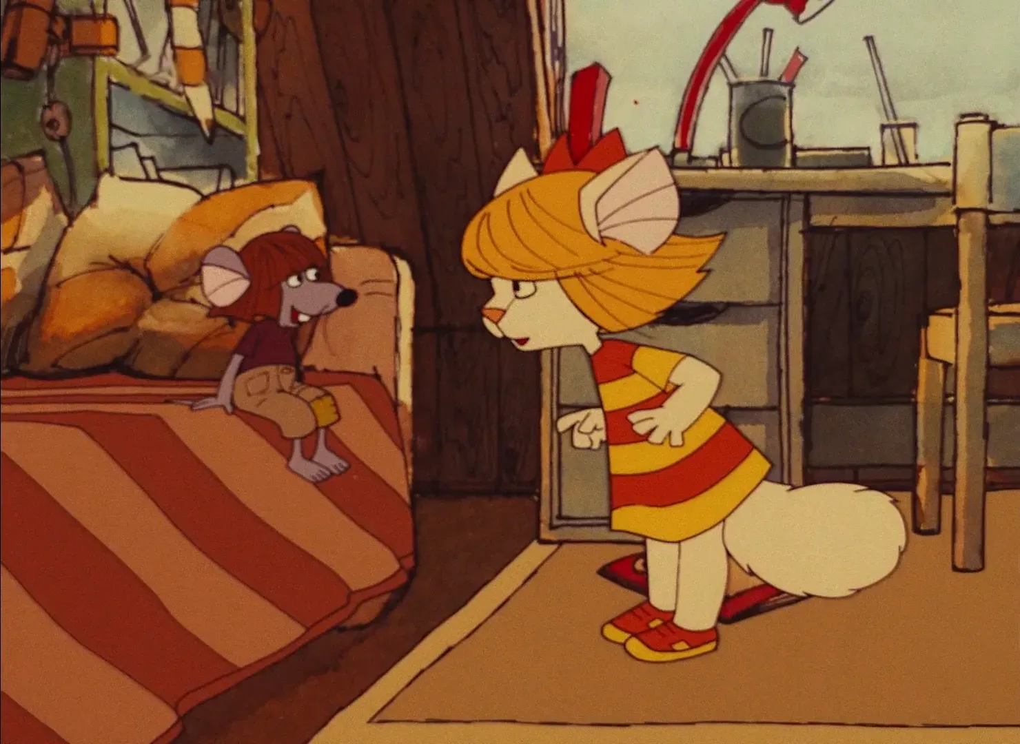 Цветовая гамма подобрана с умом — вне тенденций 80-х, приглушённые тона, мягкие цвета. Она идеально подходит настрою фильма.Анимация вполне на уровне если не "Диснея", то того же Бакши, "Ханнa-Барбера" или других, которым немного до "Диснея" не хватает.