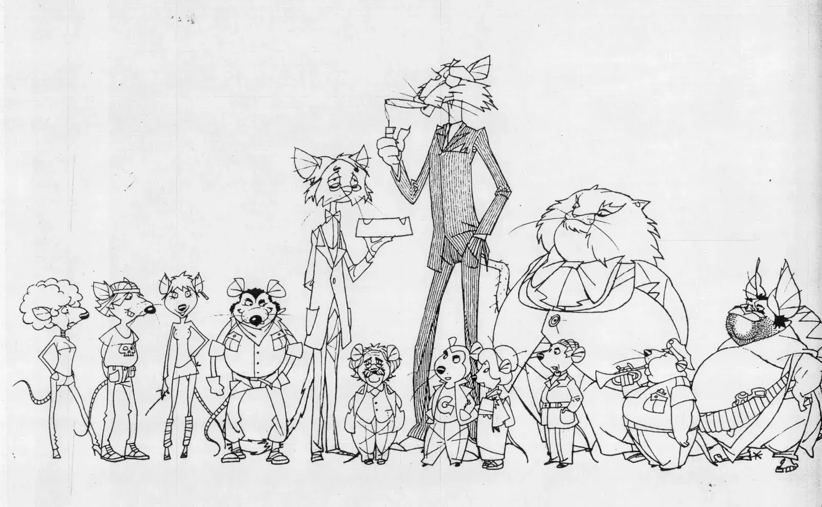 Пародийный характер фильма подчёркивает и тот факт, что мыши, крысы и коты пользуются одними и теми же зданиями, техникой и т.д., хотя разница в размерах очень велика. Впрочем, разница в росте скачет неравномерно — где-то мышь может залезть в бутылку, из которой пила крыса, а где-то крыса только чуть больше мыши. Только соотношение коты > крысы > мыши неизменно.