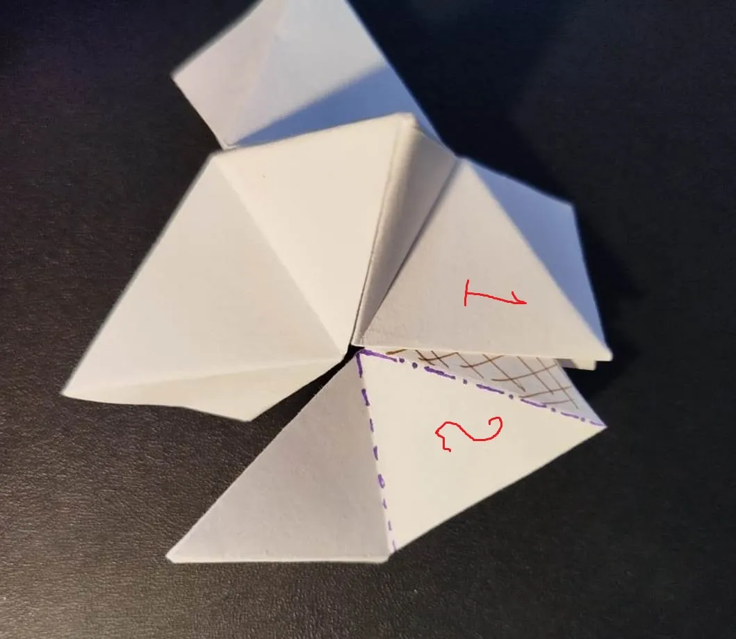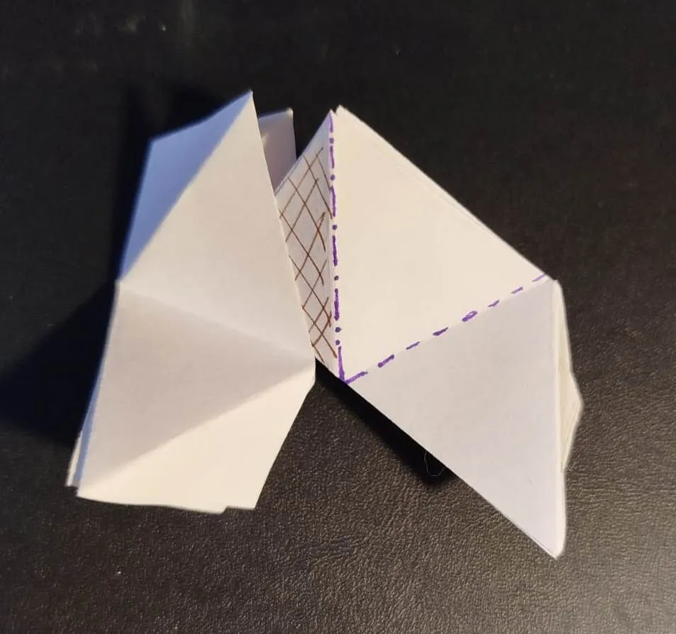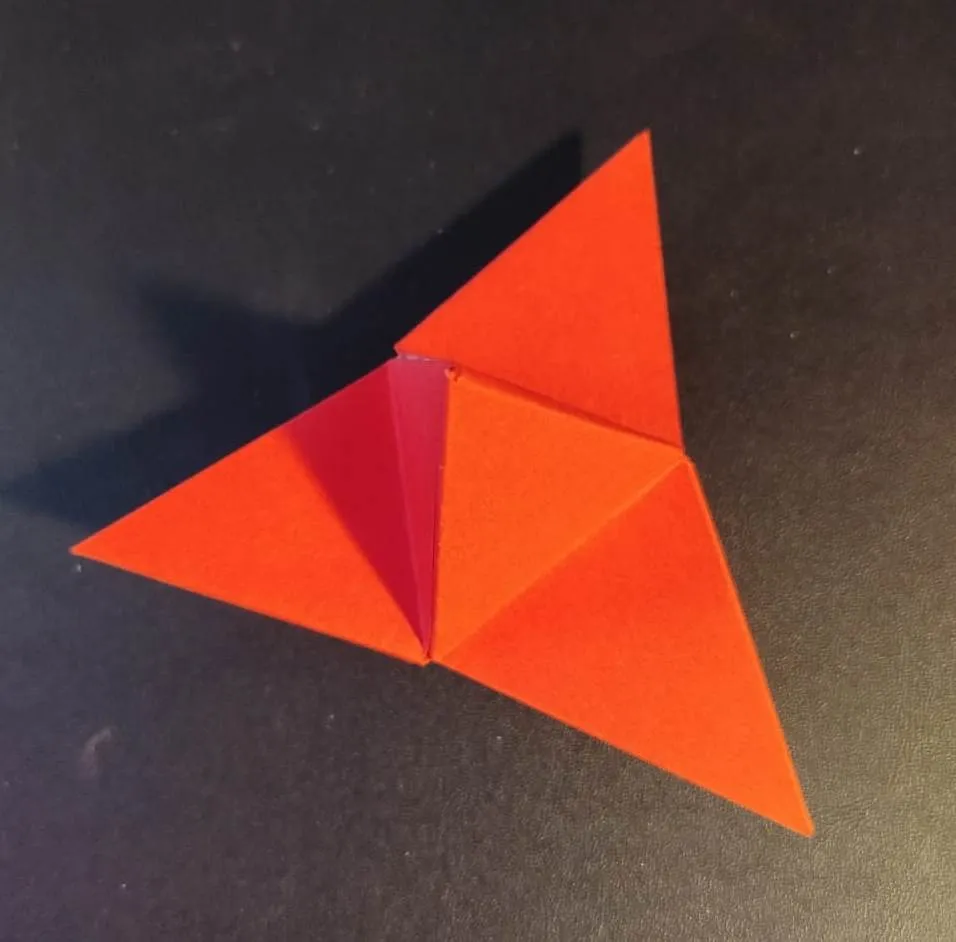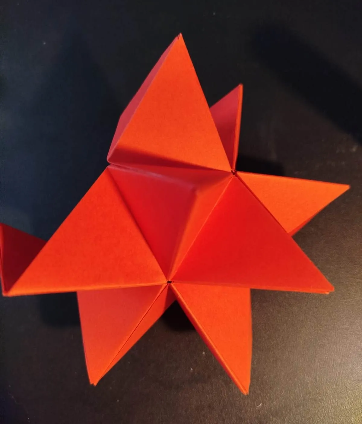 Первое - берем лист А4 и складываем его несколько раз, чтоб получилось 16 прямоугольников. Разрезаем. На одну звезду, кристалл или как угодно называйте (она представляет собой 2 соединенных тетраэдра), у которой 8 вершин, надо 12 листочков. Не 9, как написано в инструкции, а 12.