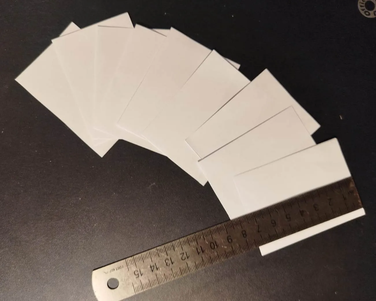 А вот при склеивании переплёта есть замечание: в прошлом посте у меня был цельный переплёт и для приклеивания картона прям на бумаге распечатаны пометки. Здесь переплёт составной, так что расстав надо соблюсти каким-то другим способом. Я чтобы попасть в размер и удобно делать обложки, напечатал себе небольшие вкладки на 3Дэ принтере