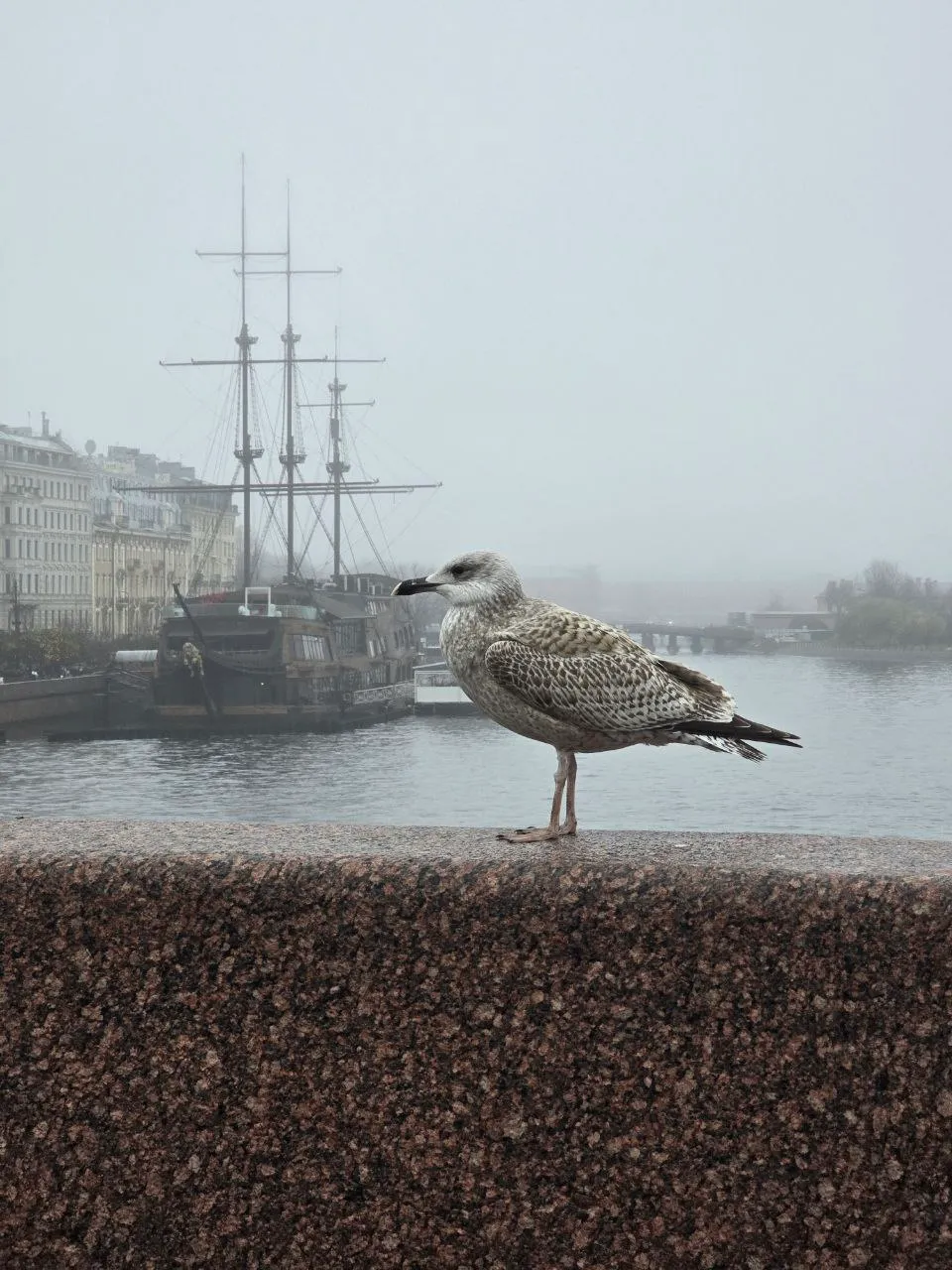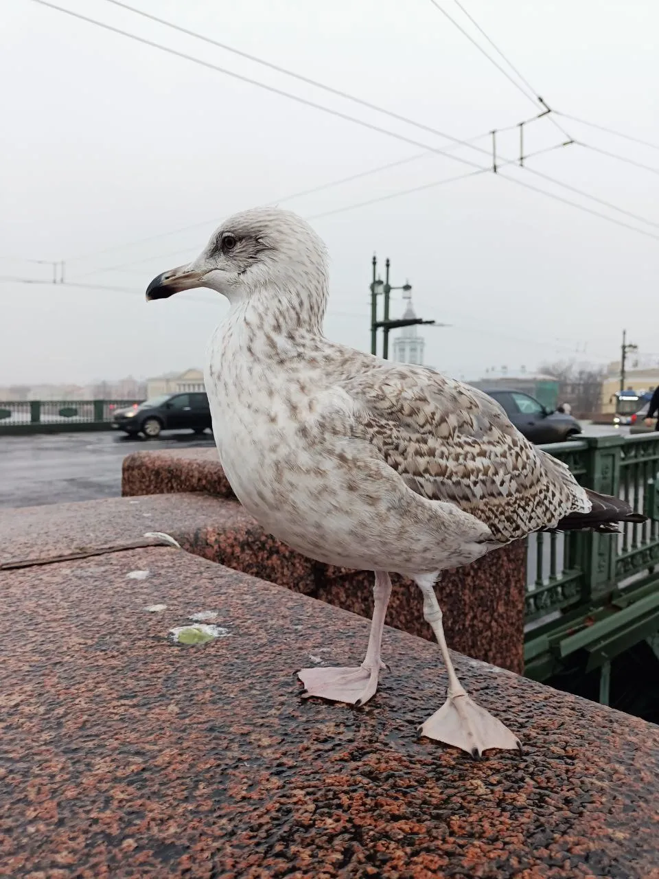 Идём мы значит по мосту в Питере, никого не трогаем, смотрим - чаечка сидит. Красивая, и как будто позирует. Муж начинает фотографировать, подходит всё ближе и ближе, а чаечка не улетает.