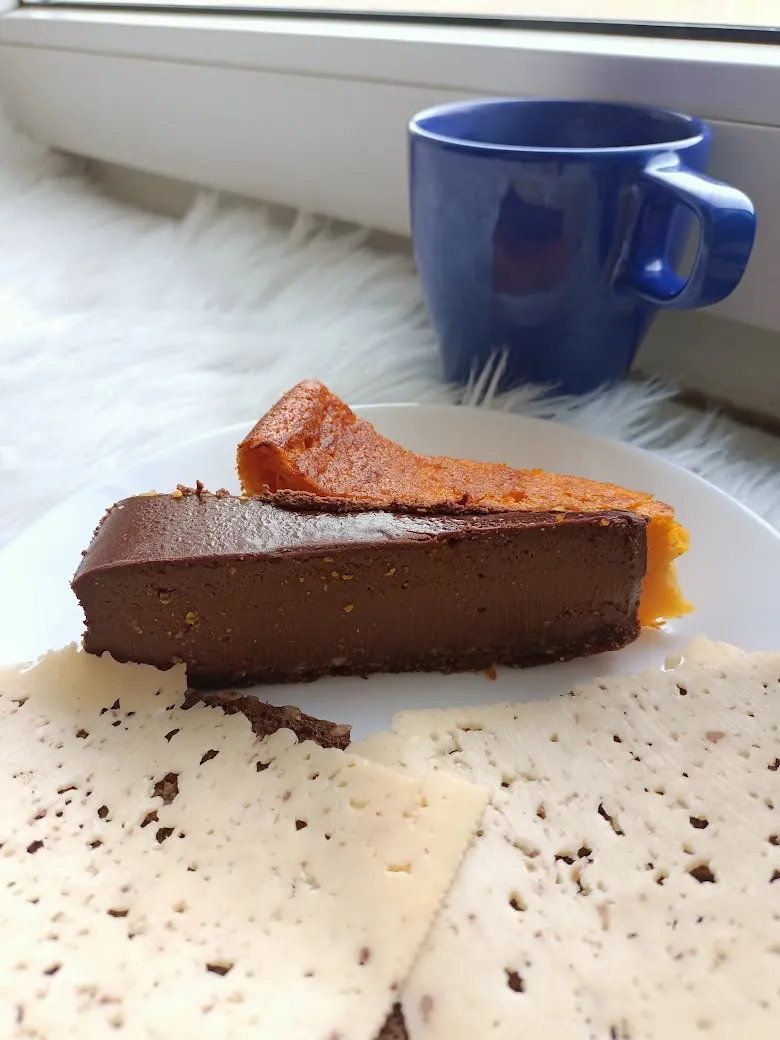 Мой любимый шоколадный чизкейк и тыквенный флан (это не порции такие маленькие, это я располовинила каждую порцию, чтобы за одну кружку кофе сожрать и то, и другое, и ещё бутерброд с сыром )