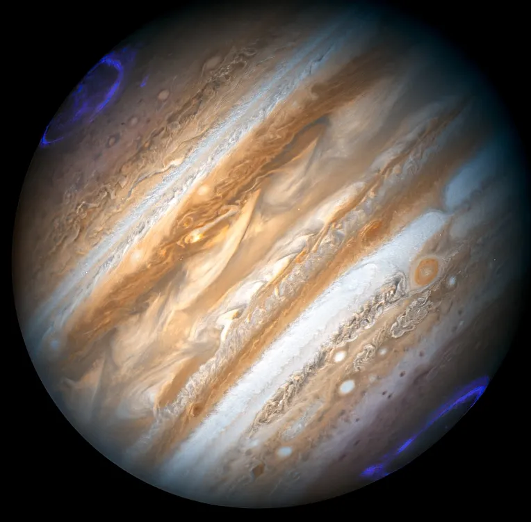 У Марса и атмосфера слишком разряжена, и магнитного поля нет. Зато Юпитер и Сатурн, обладая сильнейшим магнитным полем и плотной атмосферой, могут похвастаться грандиозными сияниями, по площади превышающими поверхность Земли.