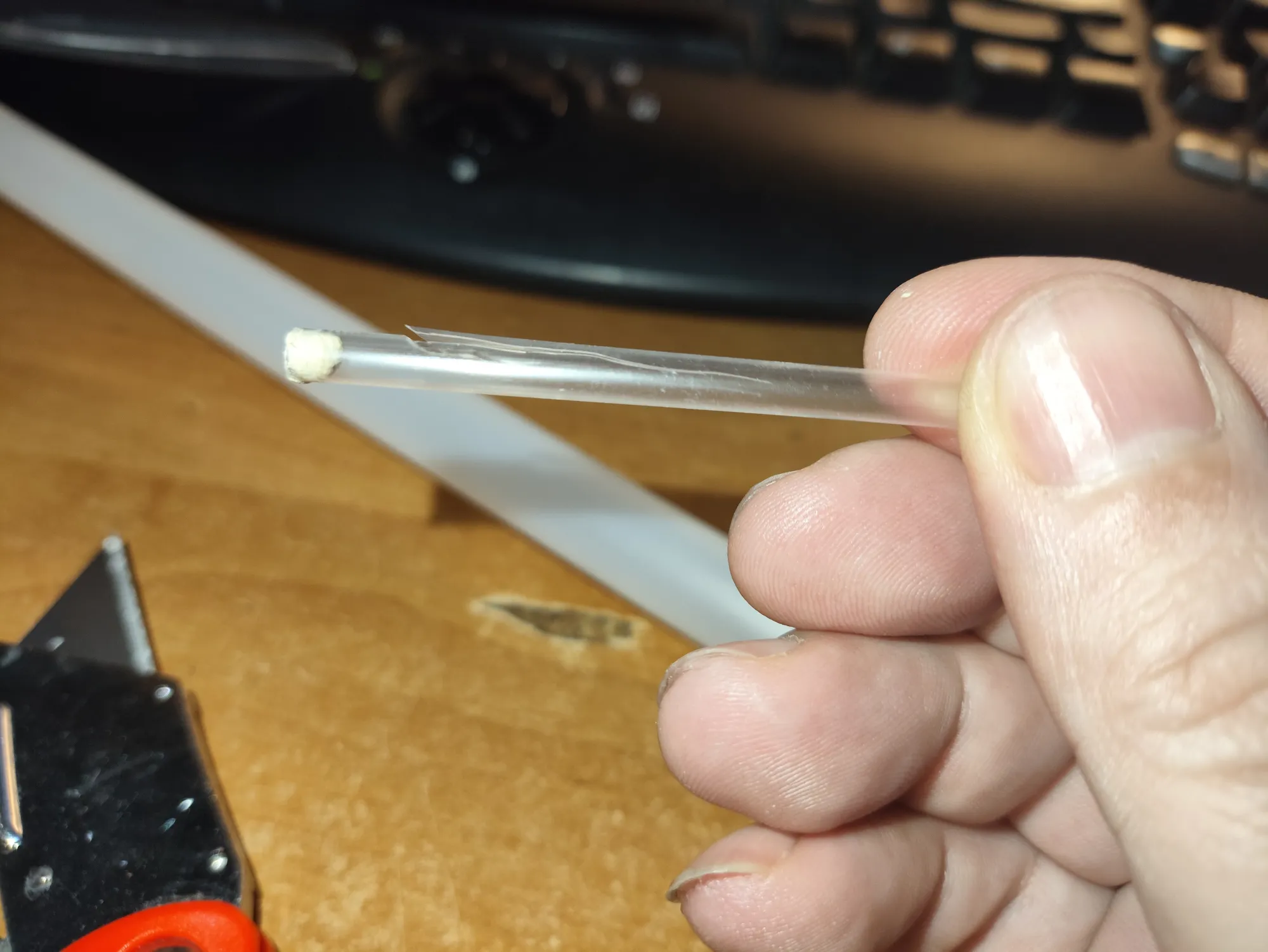 Беру заготовку и густо обмазываю размягчённым капролактоном. Заодно придаю нужную форму. Руки у меня из жопы, поэтому внешний вид вышел, как и полагается, уебанским. Но с задачами своими более чем справляется. Я доволен.