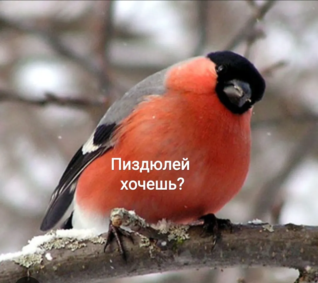 Вот смотри. Все в природе логично. Поползень — ползает. Глухарь — глухой. Сорока — стрекочет, рак — свистит. А снегирь? Что он делает? Он, нахуй, снегирит? Нет. Он просто сидит на ветке и красногрудо пялится на всю хуйню, как будто он только что прилетел из дурдома и ему тут всё охуенно.