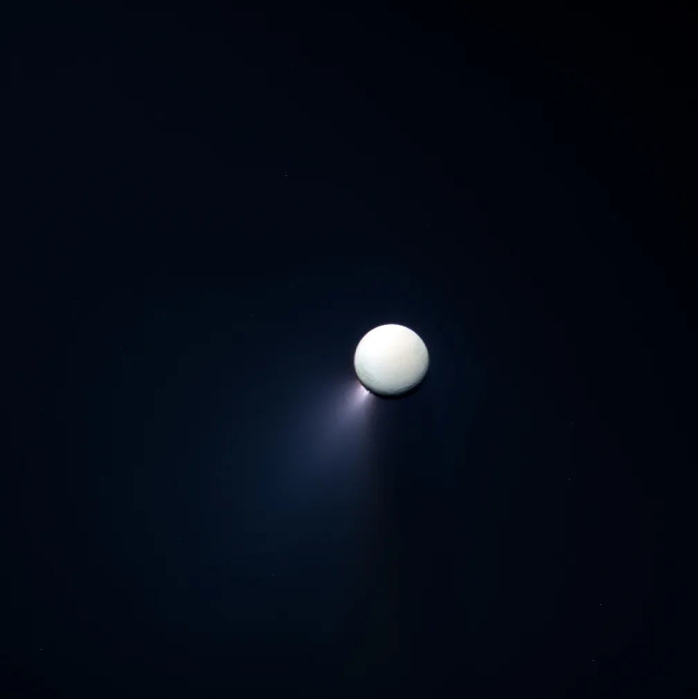 Этот внеземной фонтан - выброс воды и льда из недр спутника Сатурна Энцелада. Под его ледяной корой скрывается целый океан, который извергается в космос сквозь трещины на поверхности. Эти гейзеры настолько мощные, что их частицы пополняют кольца Сатурна