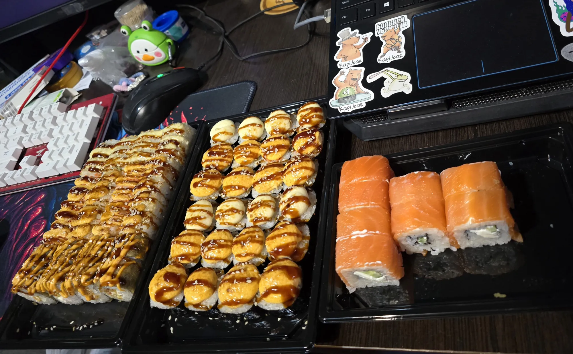 А Рафаэль со страху вспомнил, что он как скунс пшикает, так что пришлось идти мыть ему жёпку.