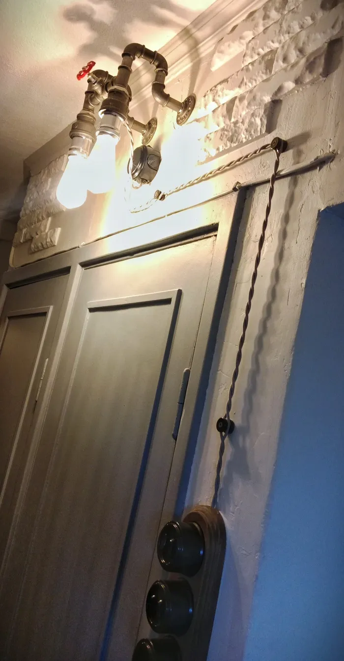 Чтобы вписать всё в единый стиль (а так же не штробить и без того хлипкие стены) использовал ретро-проводку