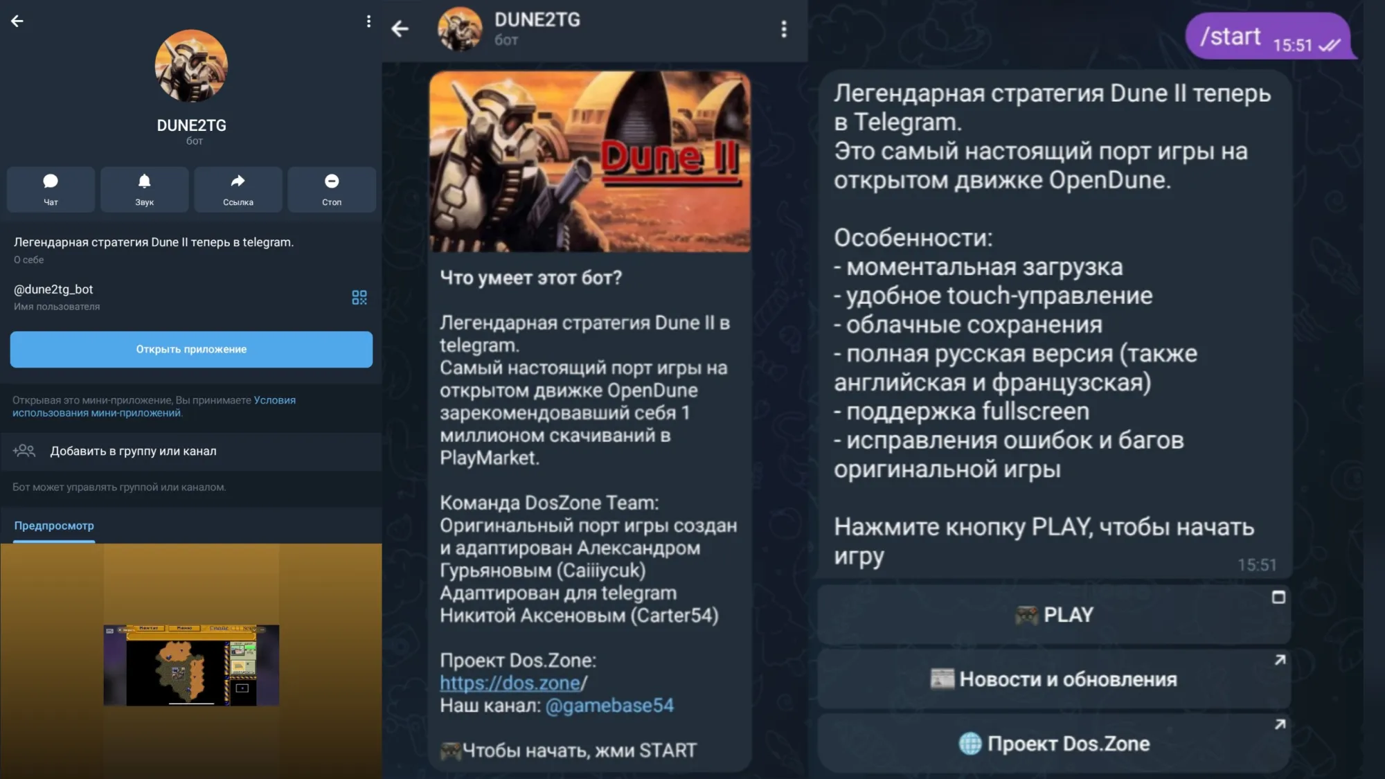 Адрес бота @dune2tg_bot. Не реклама, да там и рекламировать нечего.